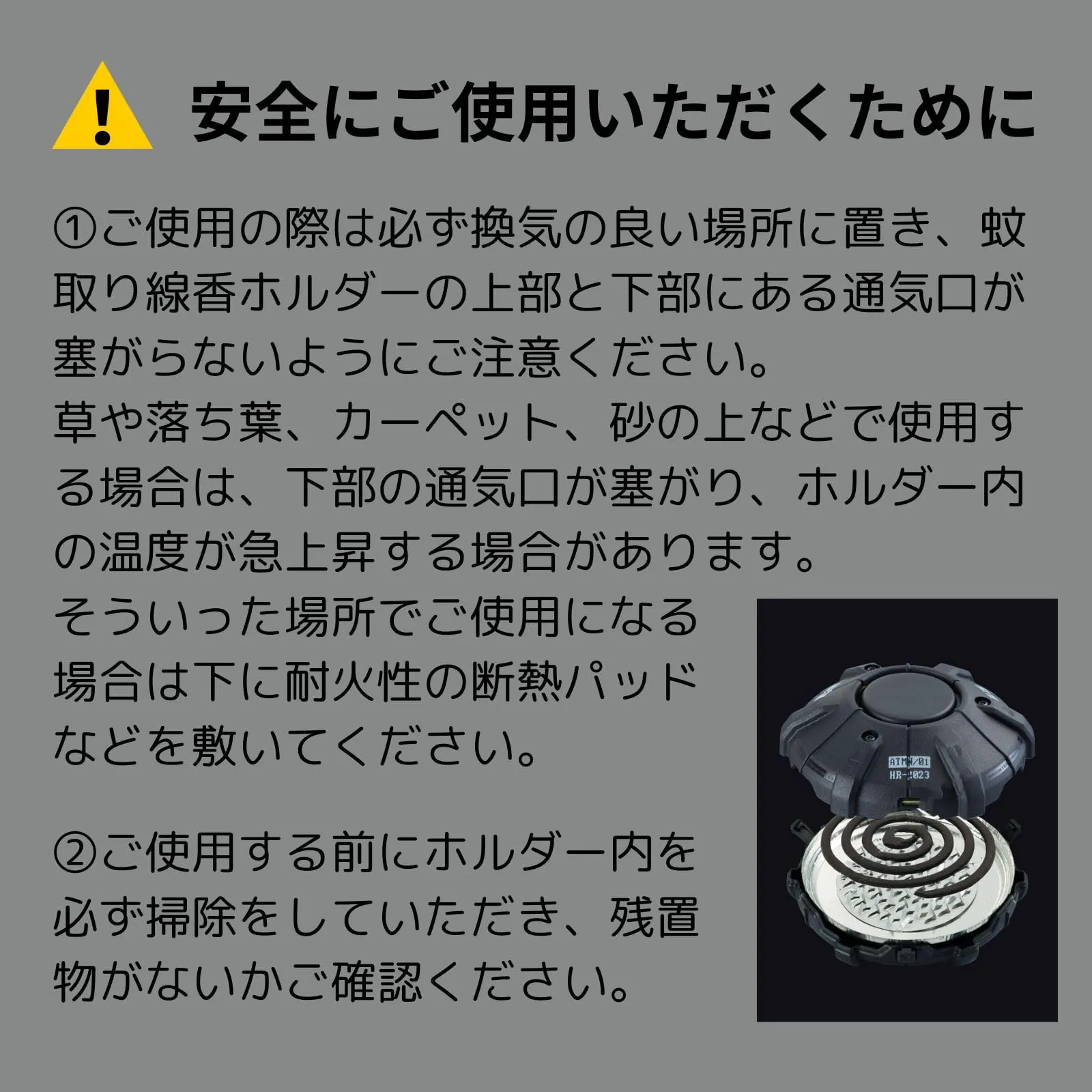 【手軽に使えるシンプル設計】 市販の蚊取り線香をそのまま置くだけで使用できる設計です。ジャンボサイズには対応していませんが、通常のサイズにはぴったりフィットします。安全性を考えた可愛らしい丸い取っ手の蓋と、安定感抜群の3点の足付きで、安心してご使用いただけます。
