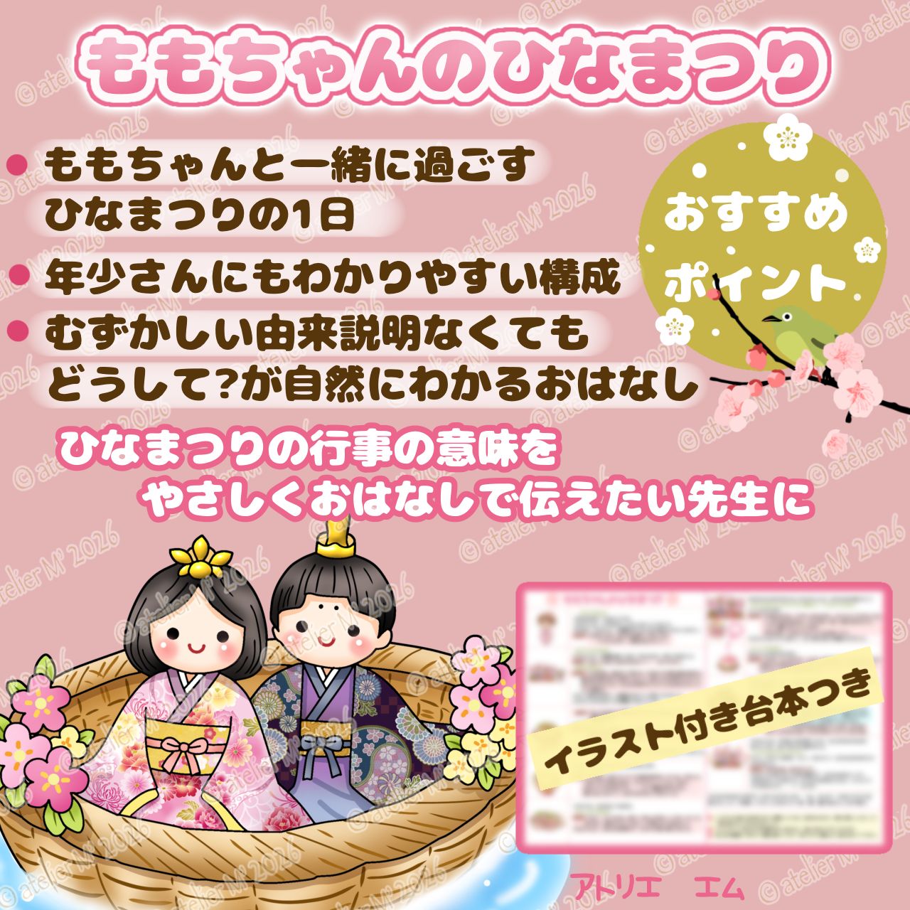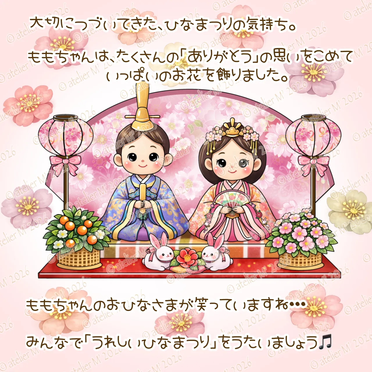 ももちゃんと過ごす、やさしいひなまつりの時間を通して、ひなまつりの余韻が、子どもたちの心にそっと残りますように…。