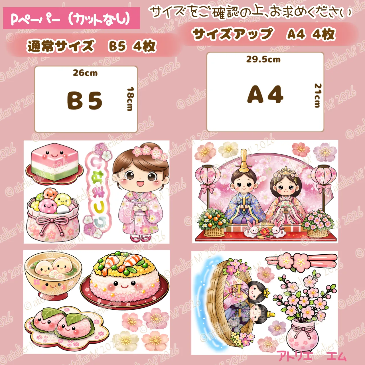【サイズアップ】3300円 さらに大きいサイズが欲しいなど、お気軽にご相談ください。 ○アトリエ制作のイラストをpペーパーに印刷 ラミネート用、スケッチブックシアター用に、 上質紙印刷可能(200円引き) ○カットなしのお届け(+700円でカット対応◎) ※こちらのシアターはオリジナル制作のため脚本・イラストの著作権はatelier M’に帰属します。 作品の模倣・無断使用・転売、また使用後のフリマアプリなどでの再出品はご遠慮ください。 #パネルシアター #ペープサート #保育教材 #ひなまつり #おひなさまの由来 #うれしいひなまつり #保育出し物 #ハンドメイド #誕生日会 #誕生日 #おたんじょうび #イベント #知育玩具 #行事 #ラミネートシアター #ホワイトボードシアター #スケッチブックシアター #紙芝居 #桃の節句