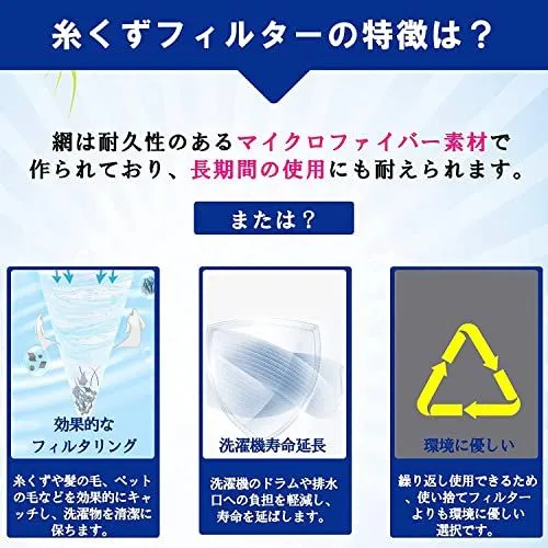 【商品説明】 この洗濯機用糸くずフィルターは、お家の洗濯をより快適で効果的なものに変えます。高品質の素材で作られたこのフィルターは、糸くずや髪の毛、ペットの毛などの不要なゴミをしっかりキャッチし、洗濯機の寿命を延ばすお手伝いをします。 『特徴』①