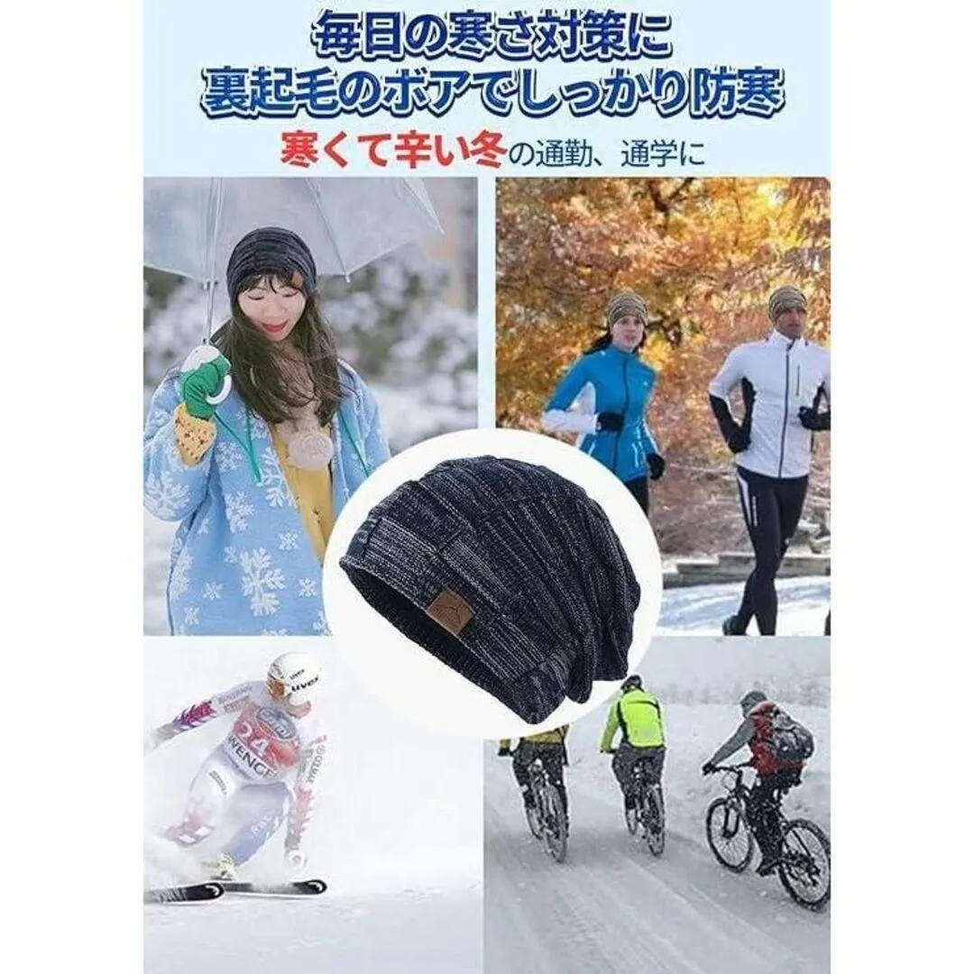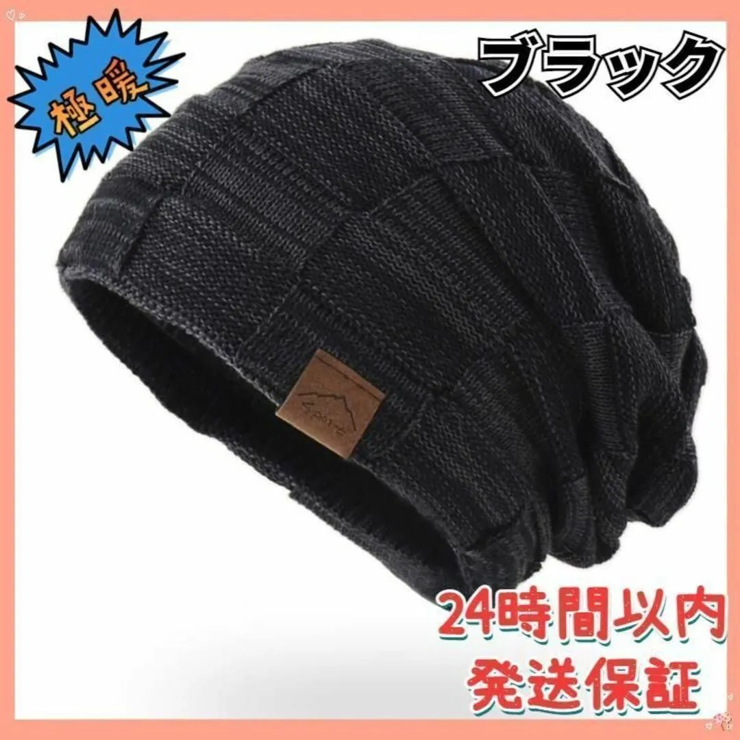 ニット帽子 メンズ 冬 防寒 裏起毛 暖 大きい 通勤 通学 男女兼用 ブラック