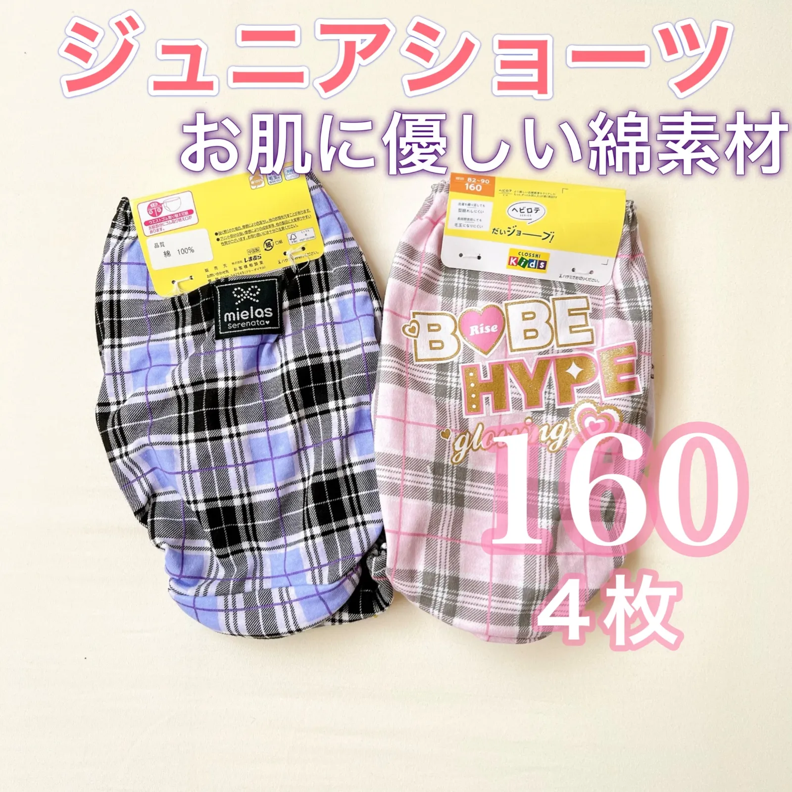 ジュニアショーツ【160㎝】4枚 綿100% パンツ インゴム 柔らかい