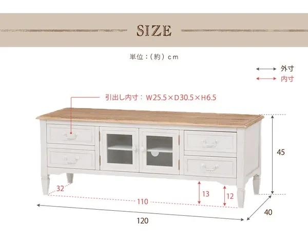 ■本体サイズ:(約)幅120×奥行40×高さ45cm