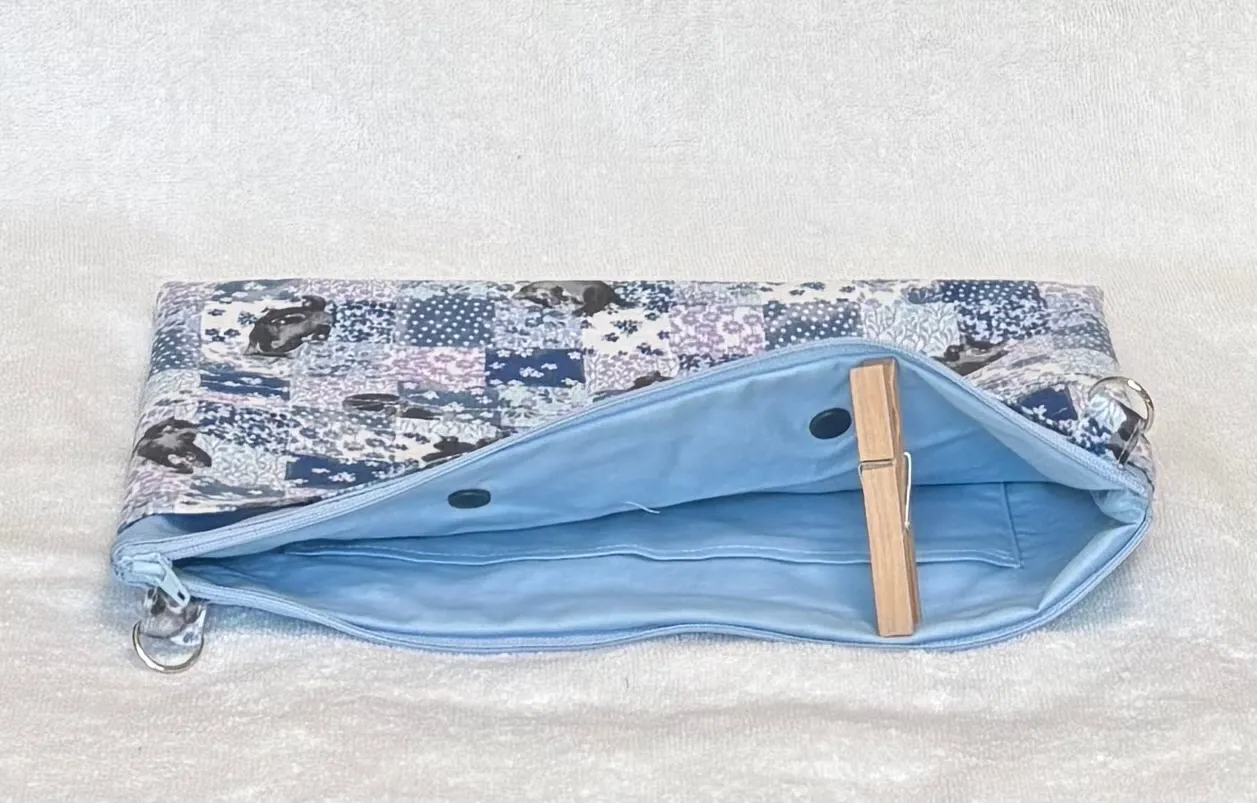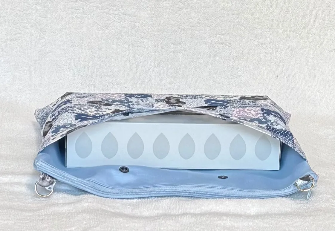 手前のポケットにプラスナップをつけて ティッシュを入れることができます。