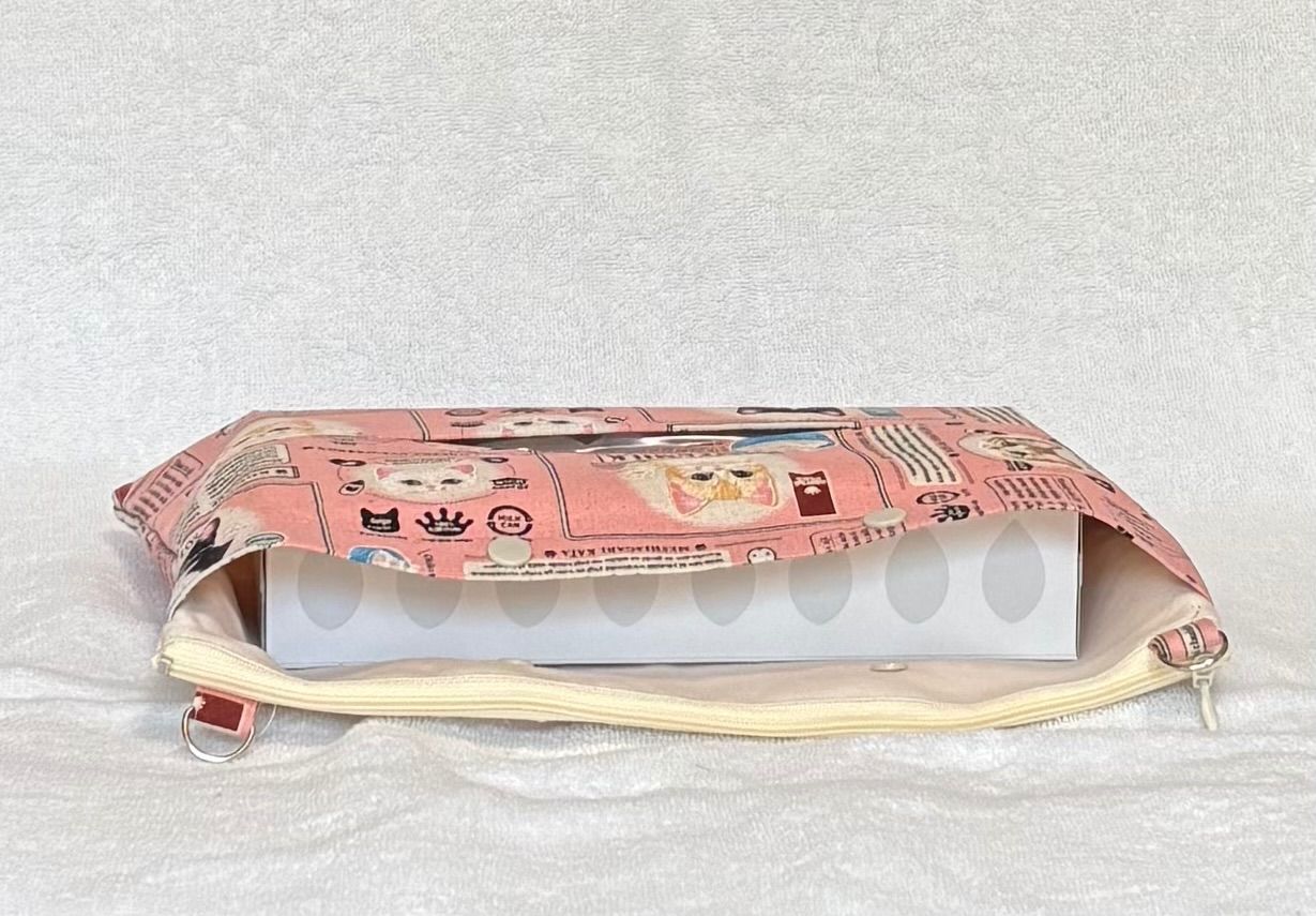 手前のポケットにプラスナップをつけて ティッシュを入れることができます。