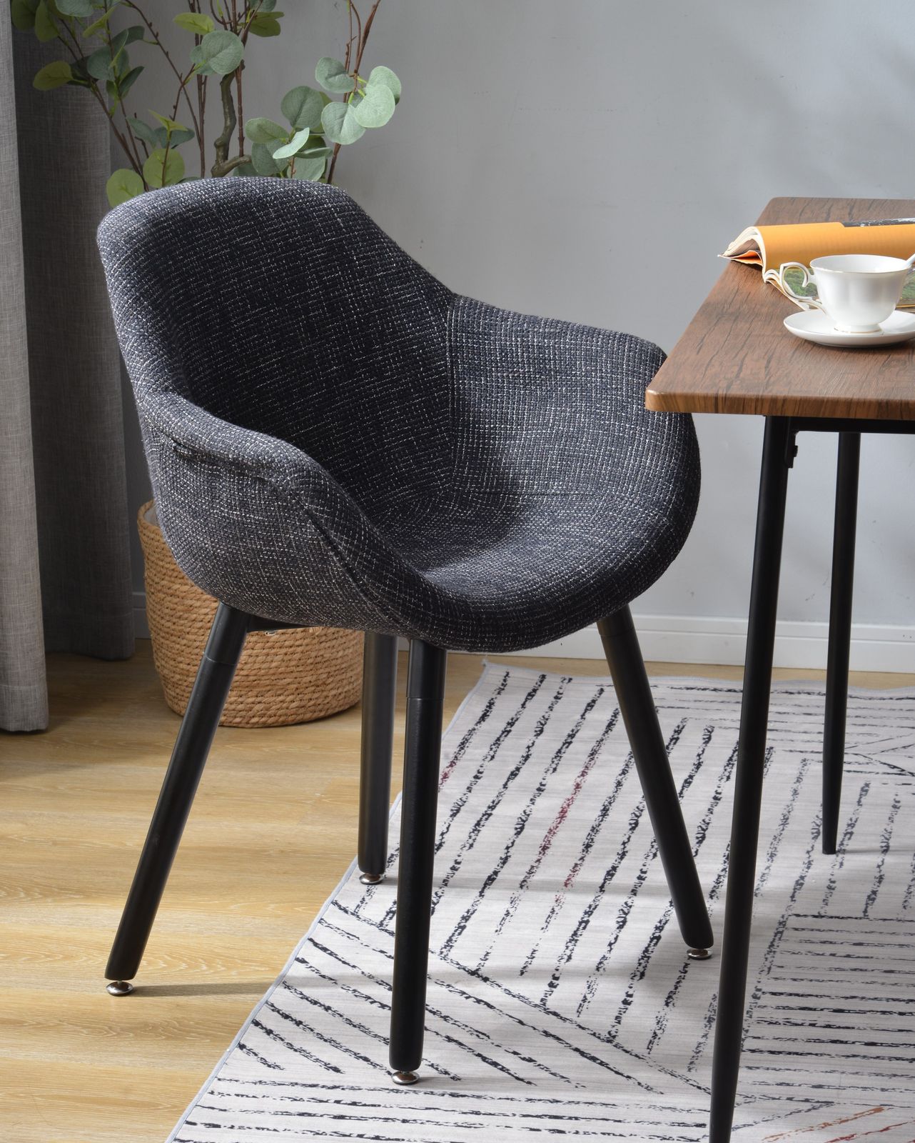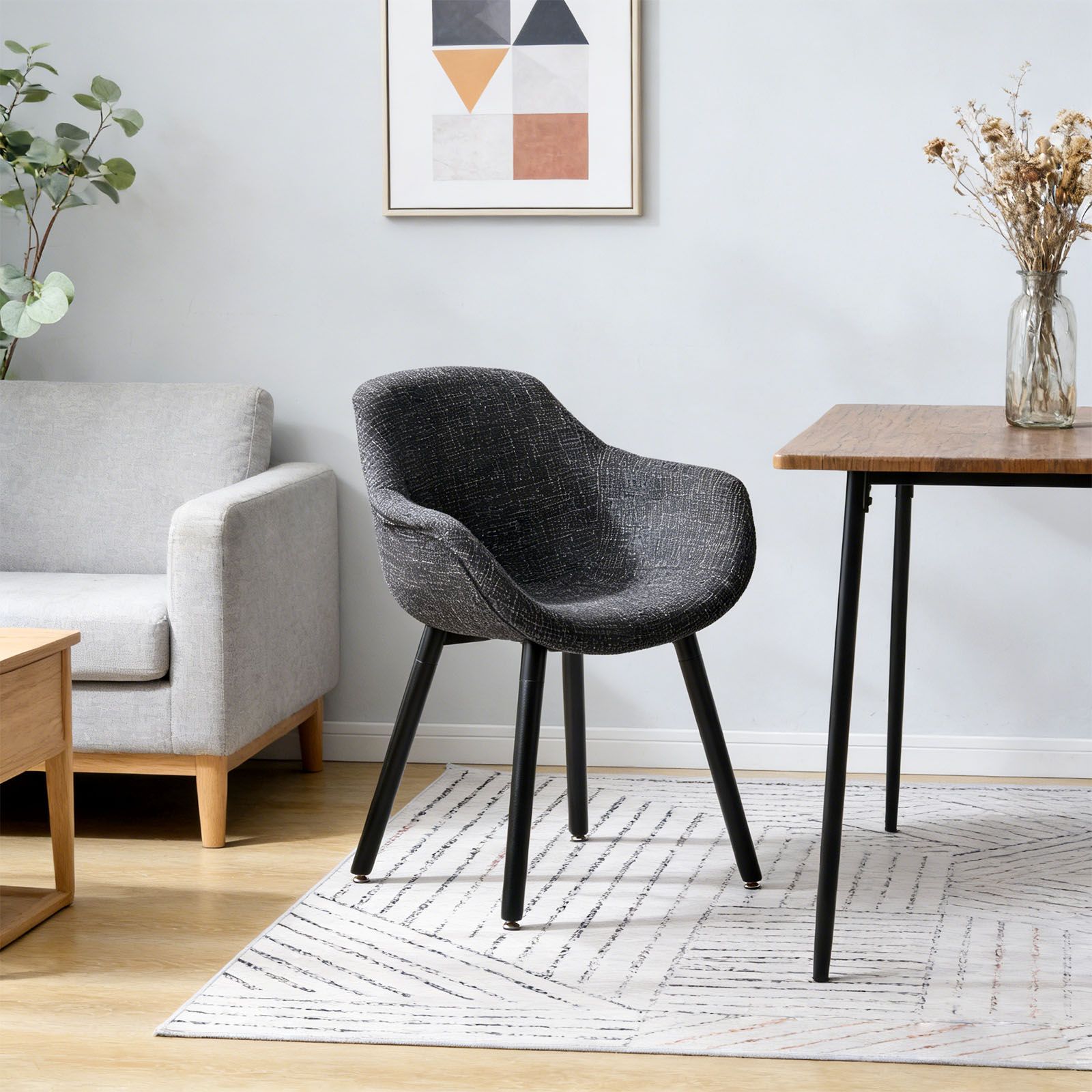 ダイニングチェア シェルチェア ファブリック 北欧スタイル デザイナーファッション ホームオフィスチェア リビングルームチェア 【ブラック】