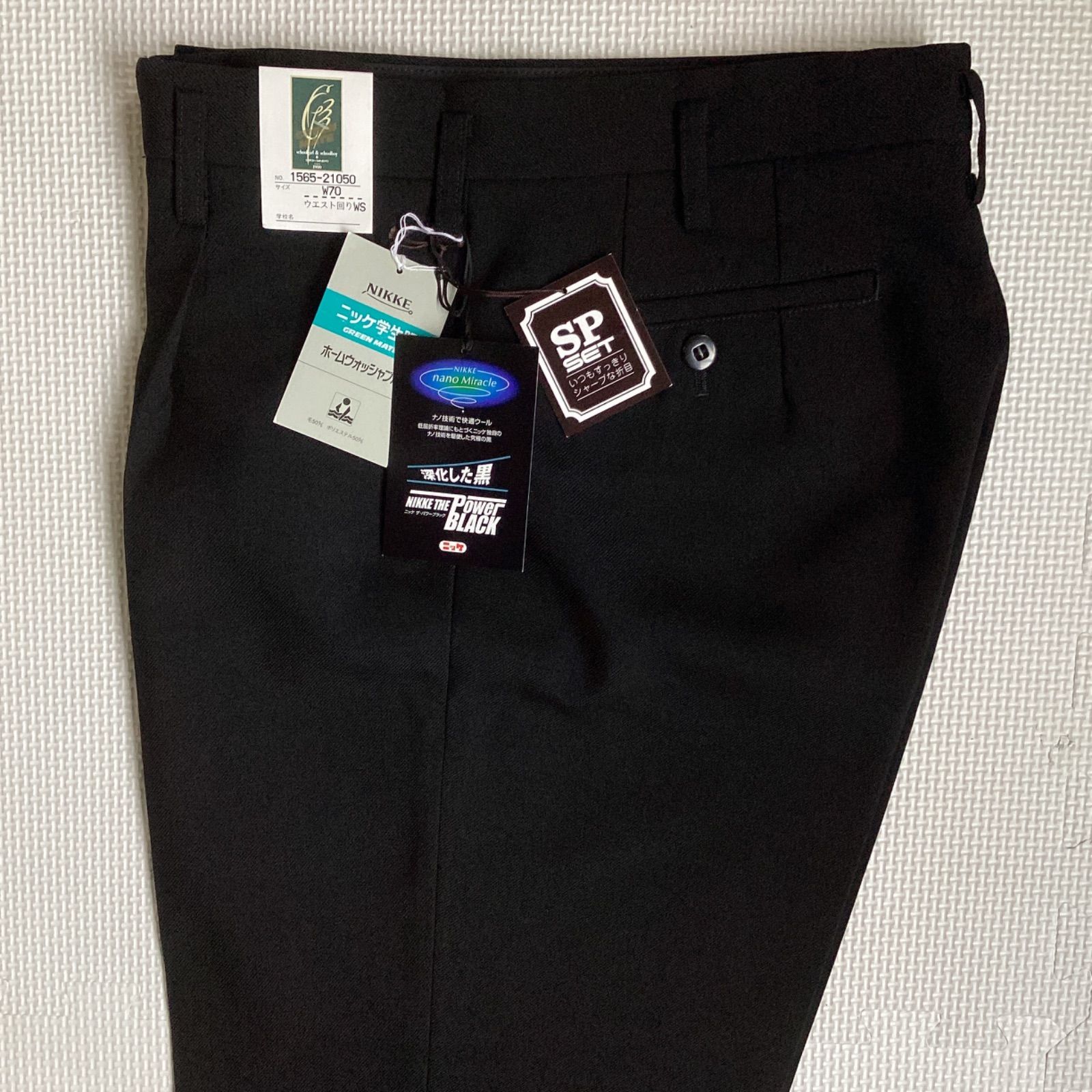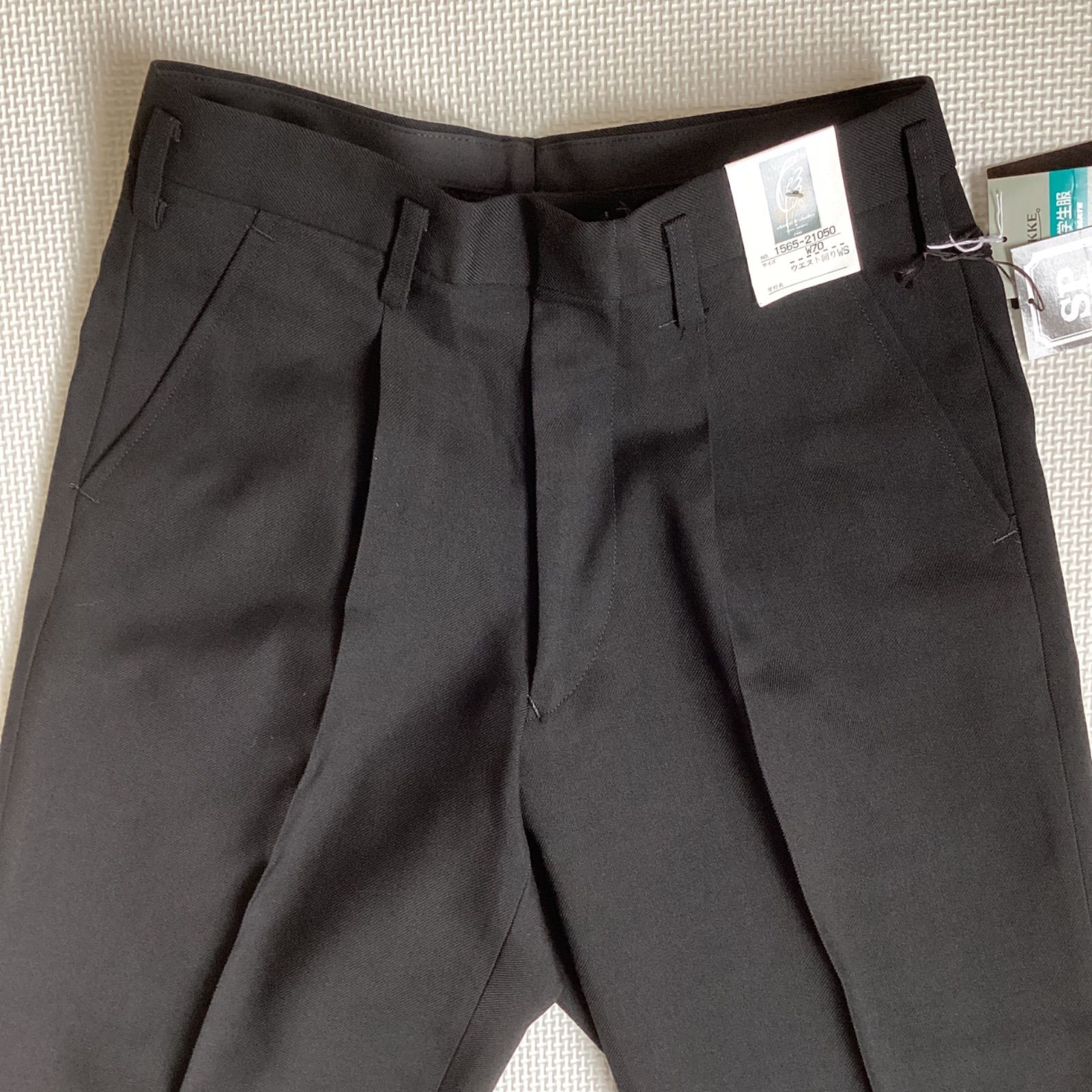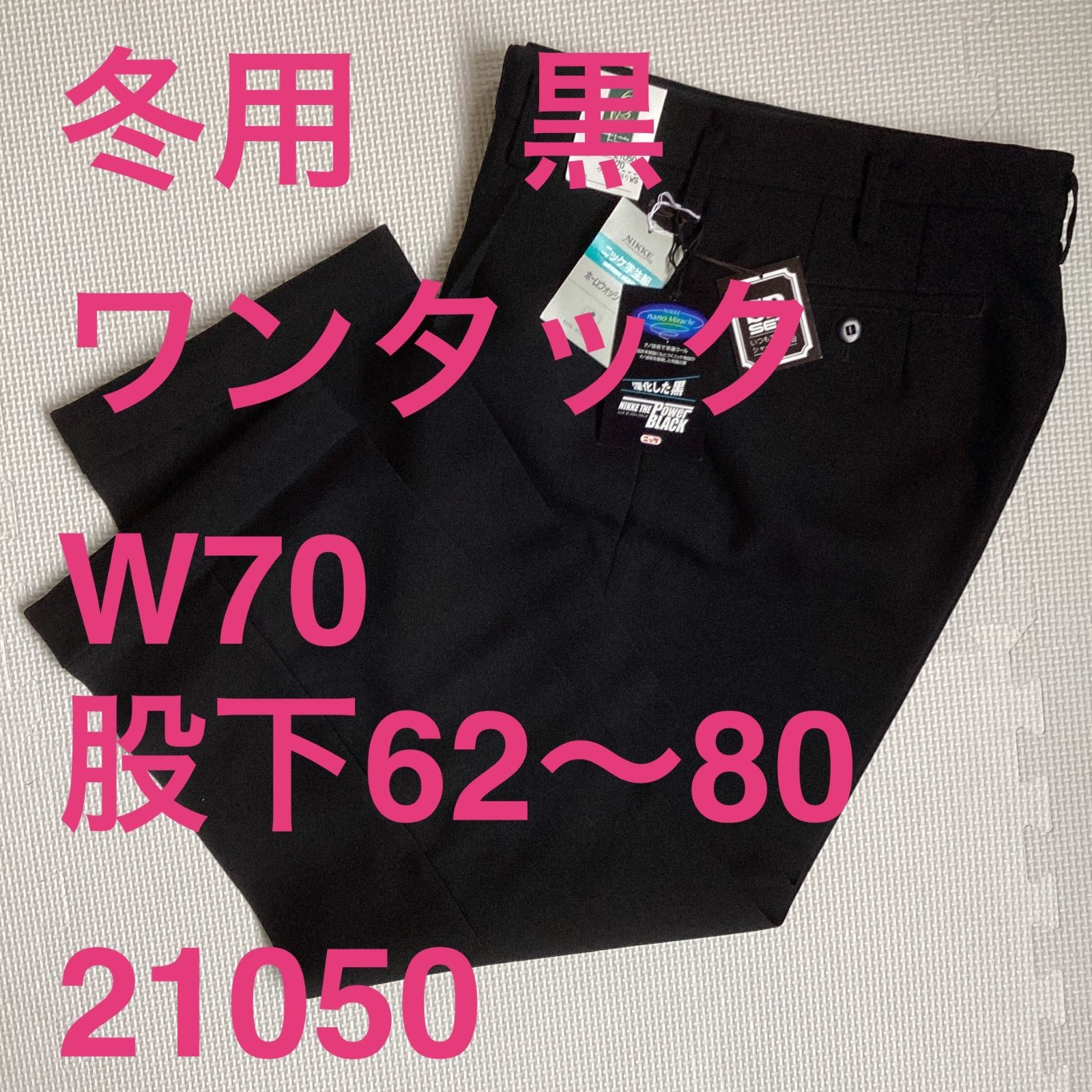学生ズボン W70 裾上げ済み《股下62〜80》 黒 サージ ワンタック ホームウォッシャブル 裾ダブル 冬用 新品未使用品 21050 ポリエステル50% 毛50% NIKKE THE POWER BLACK 卒業 入学 学生 高校 中学 通学