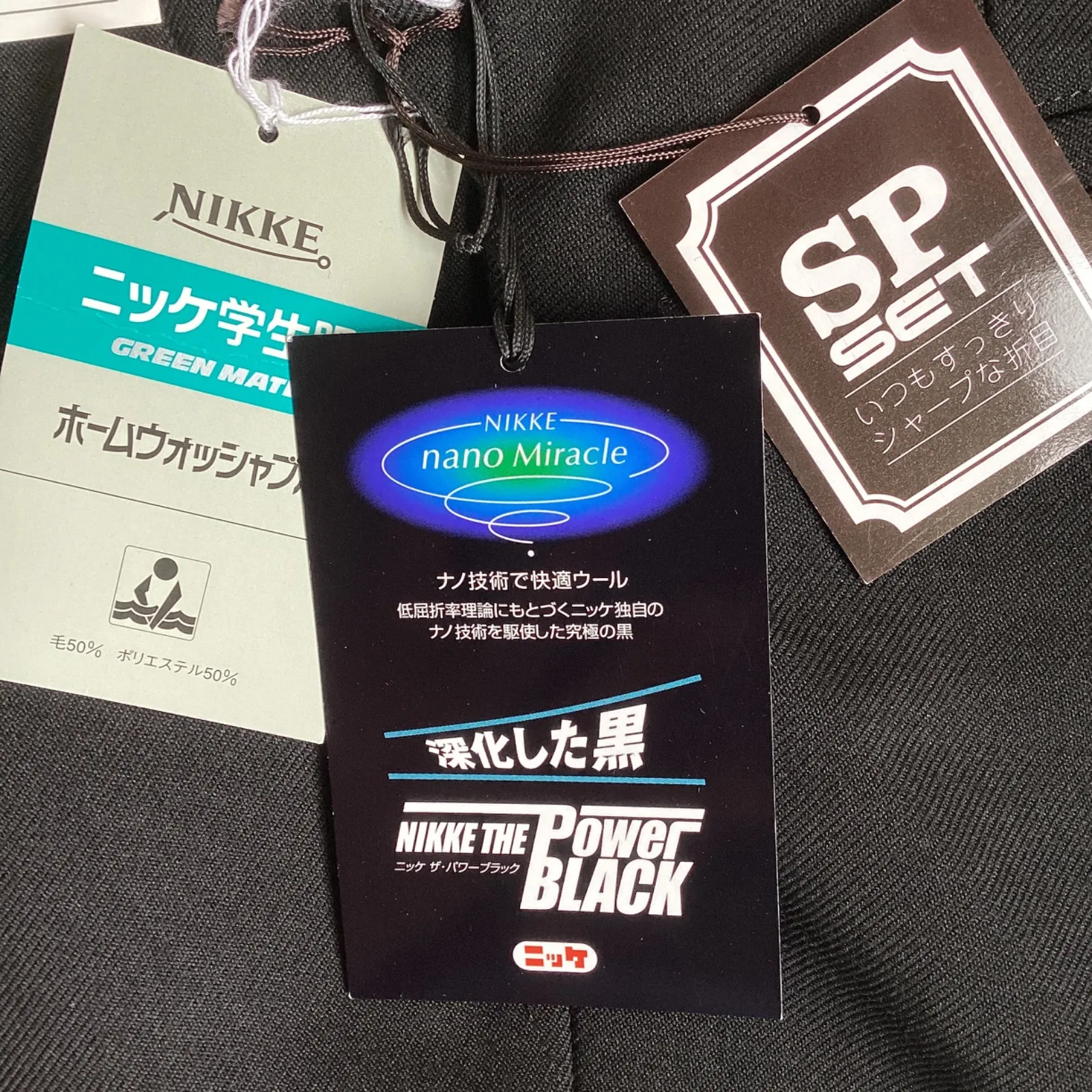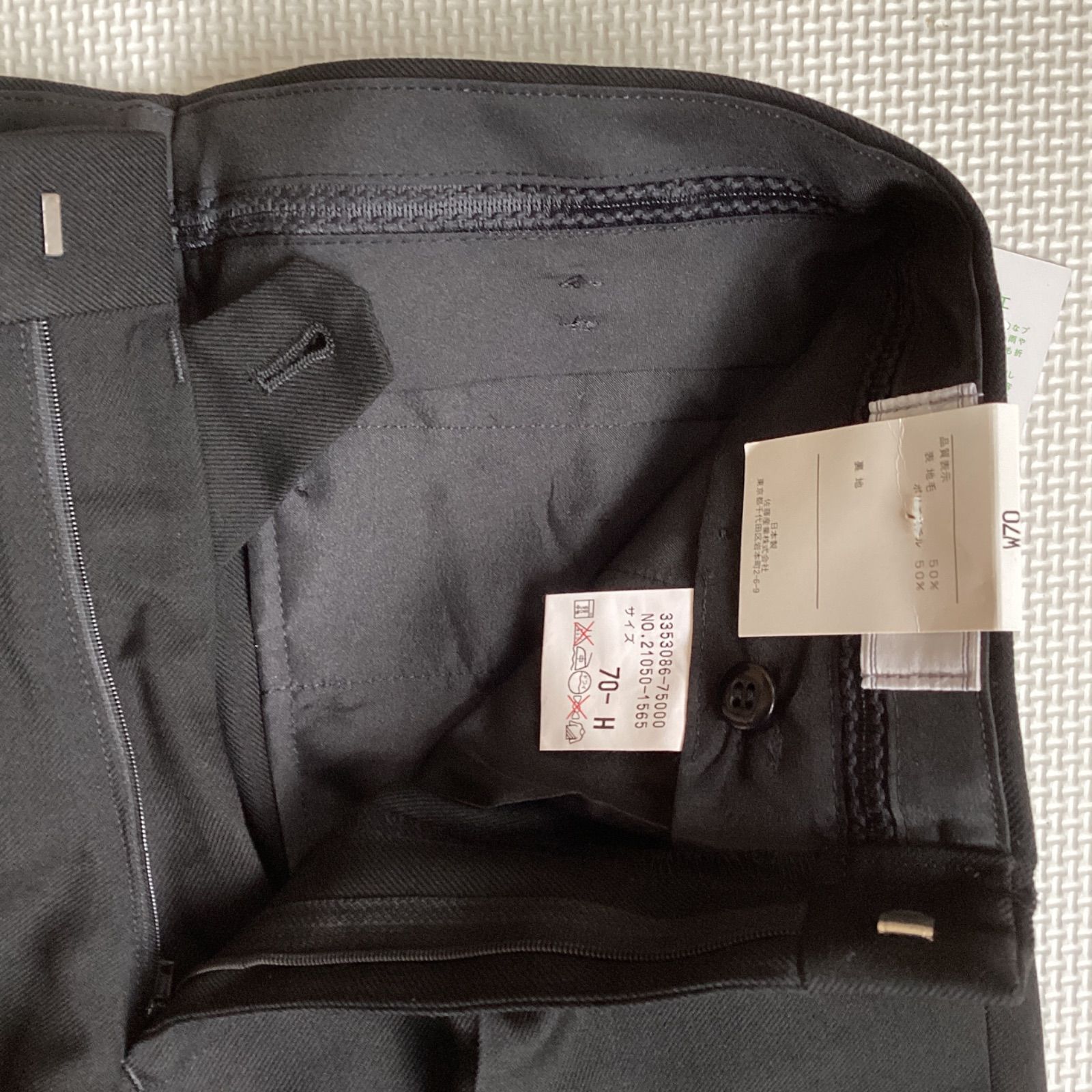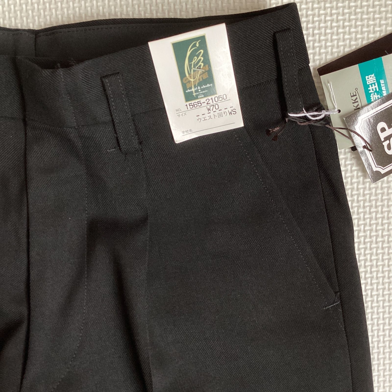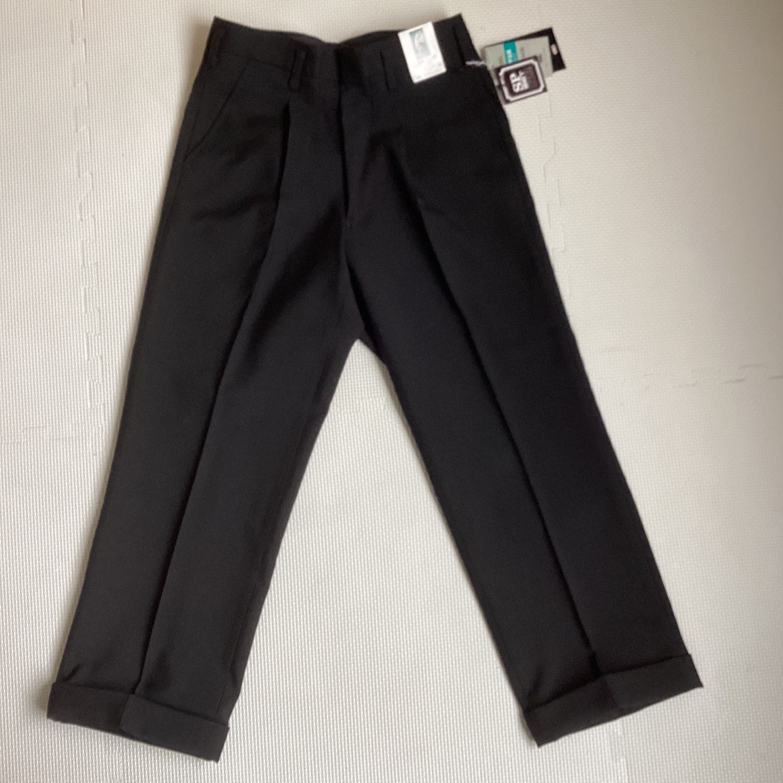 学生ズボン W70 裾上げ済み《股下62〜80》 黒 サージ ワンタック ホームウォッシャブル 裾ダブル 冬用 新品未使用品 21050 ポリエステル50% 毛50% NIKKE THE POWER BLACK 卒業 入学 学生 高校 中学 通学