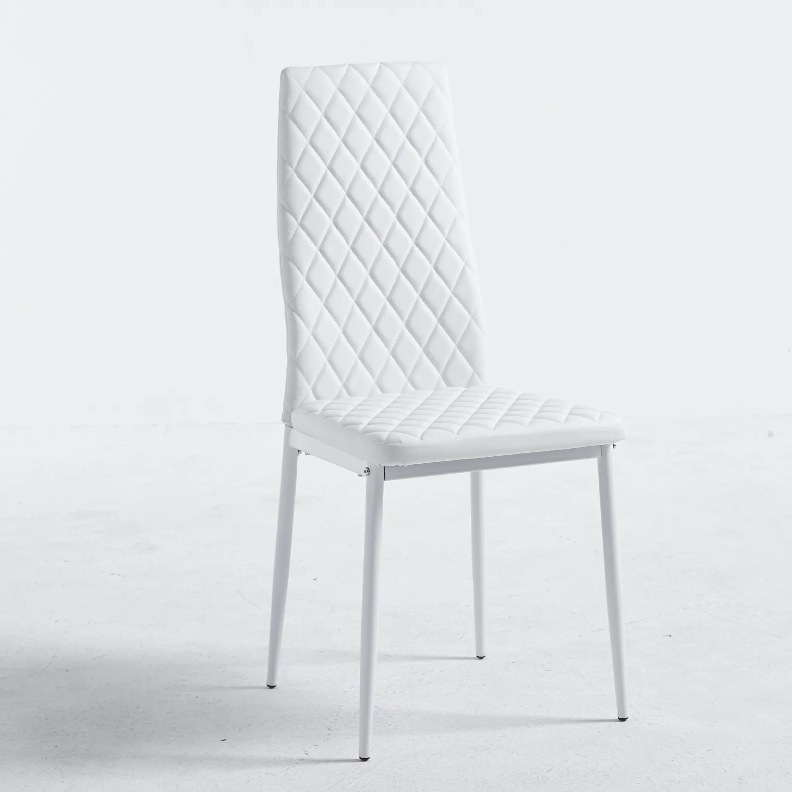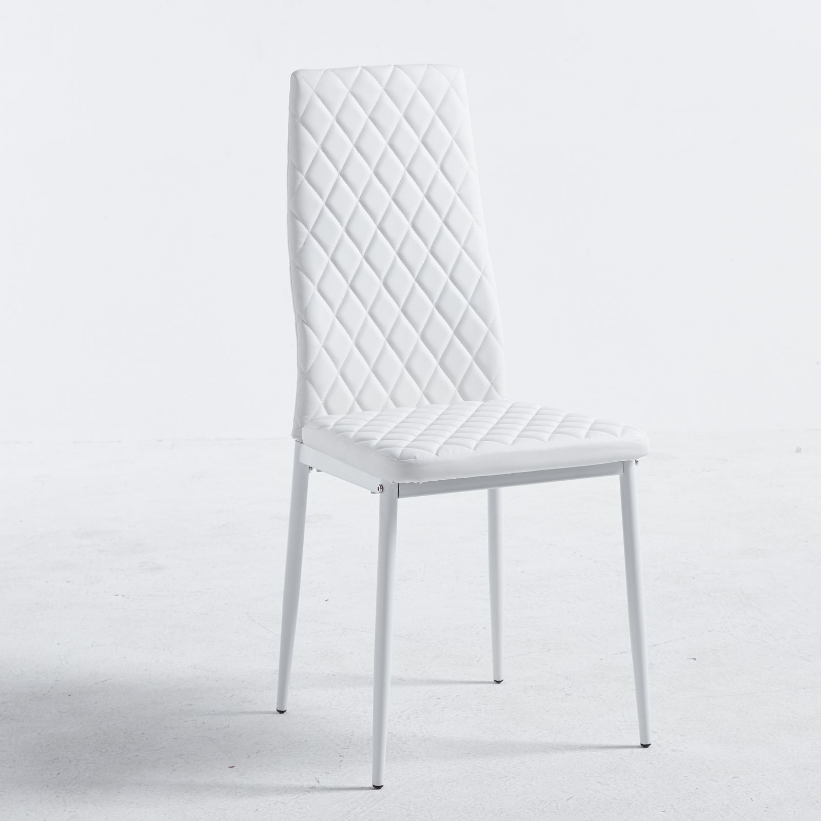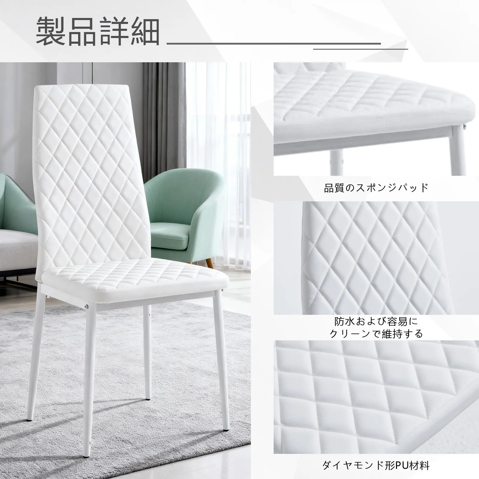 ダイニングチェア 2脚セット PUレザー 椅子 イス 食卓椅子 菱形 レトロ 北欧 コンパクト リビングチェア 【ホワイト】