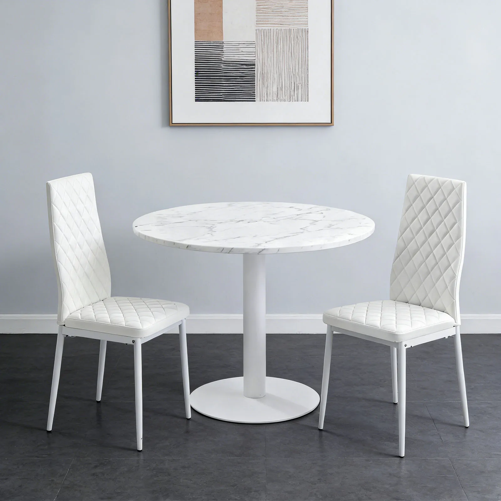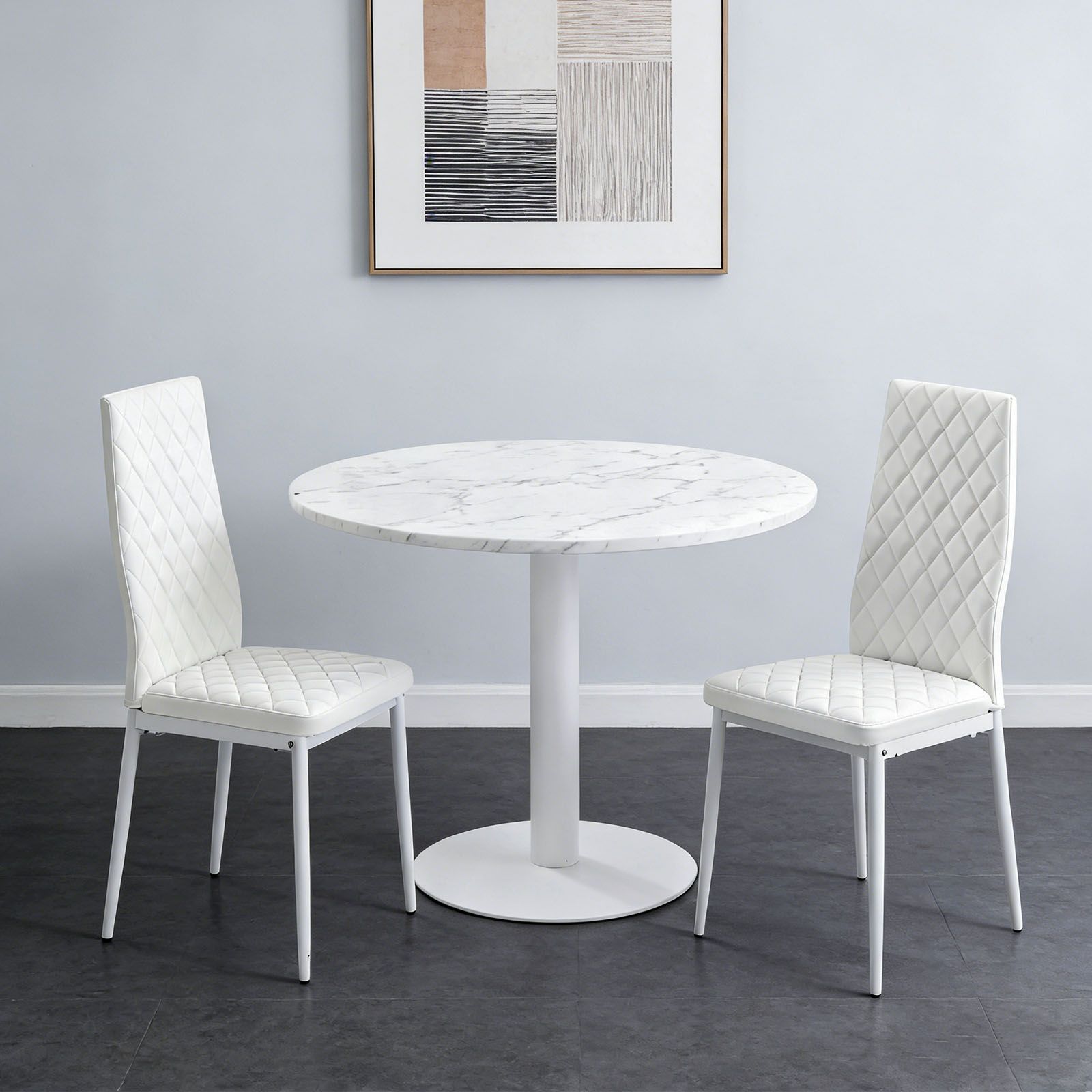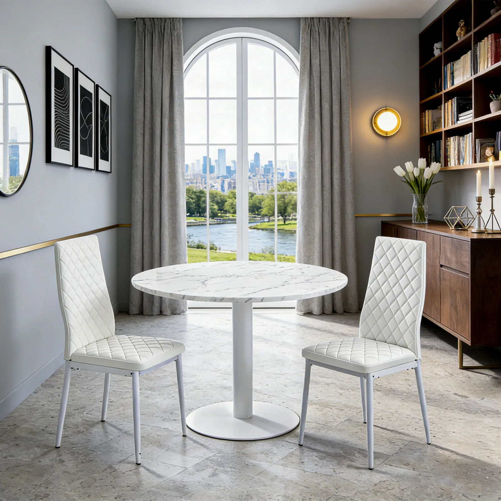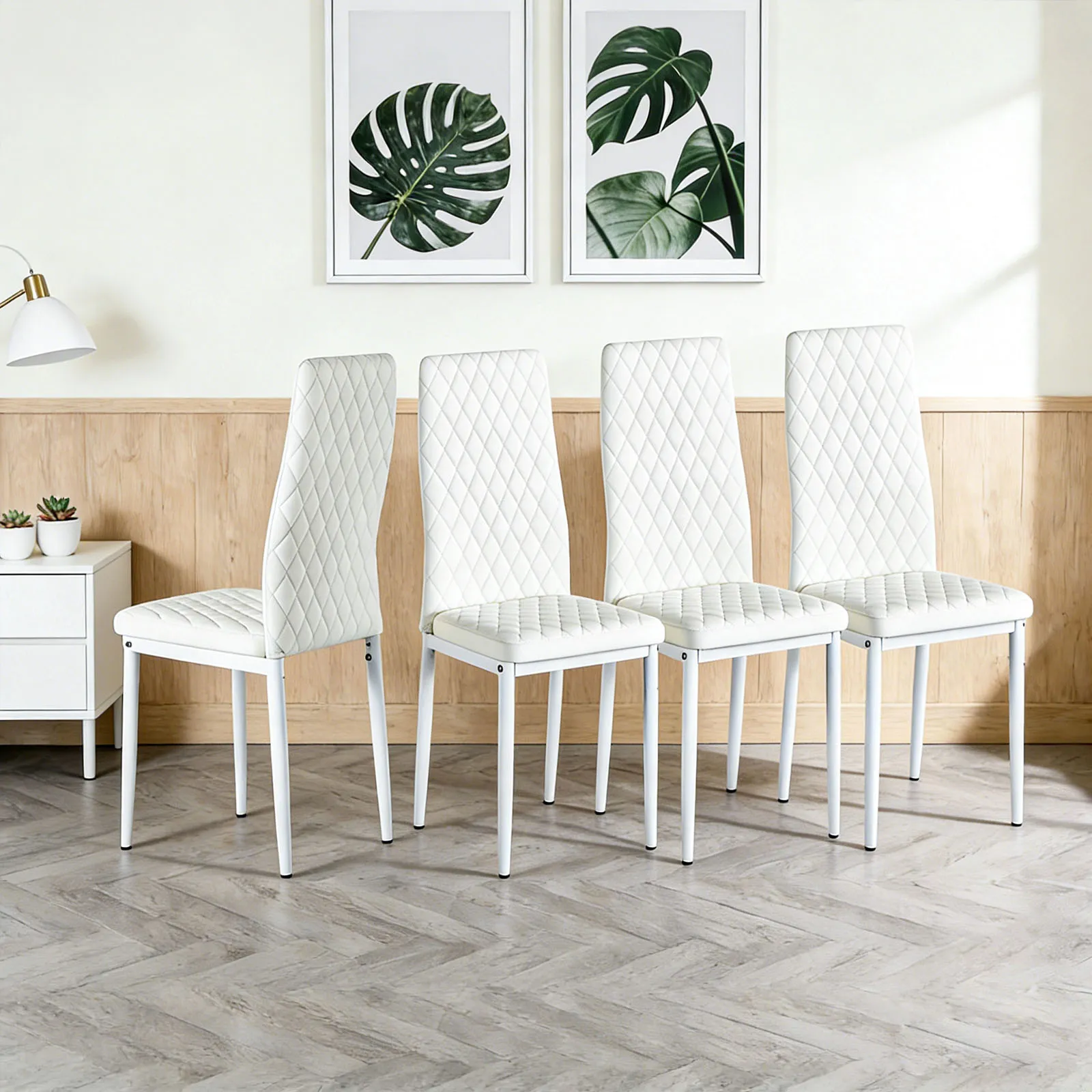 ダイニングチェア 2脚セット PUレザー 椅子 イス 食卓椅子 菱形 レトロ 北欧 コンパクト リビングチェア 【ホワイト】