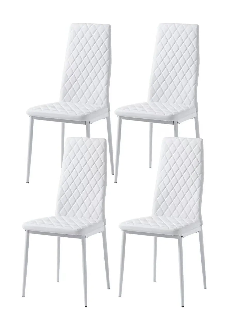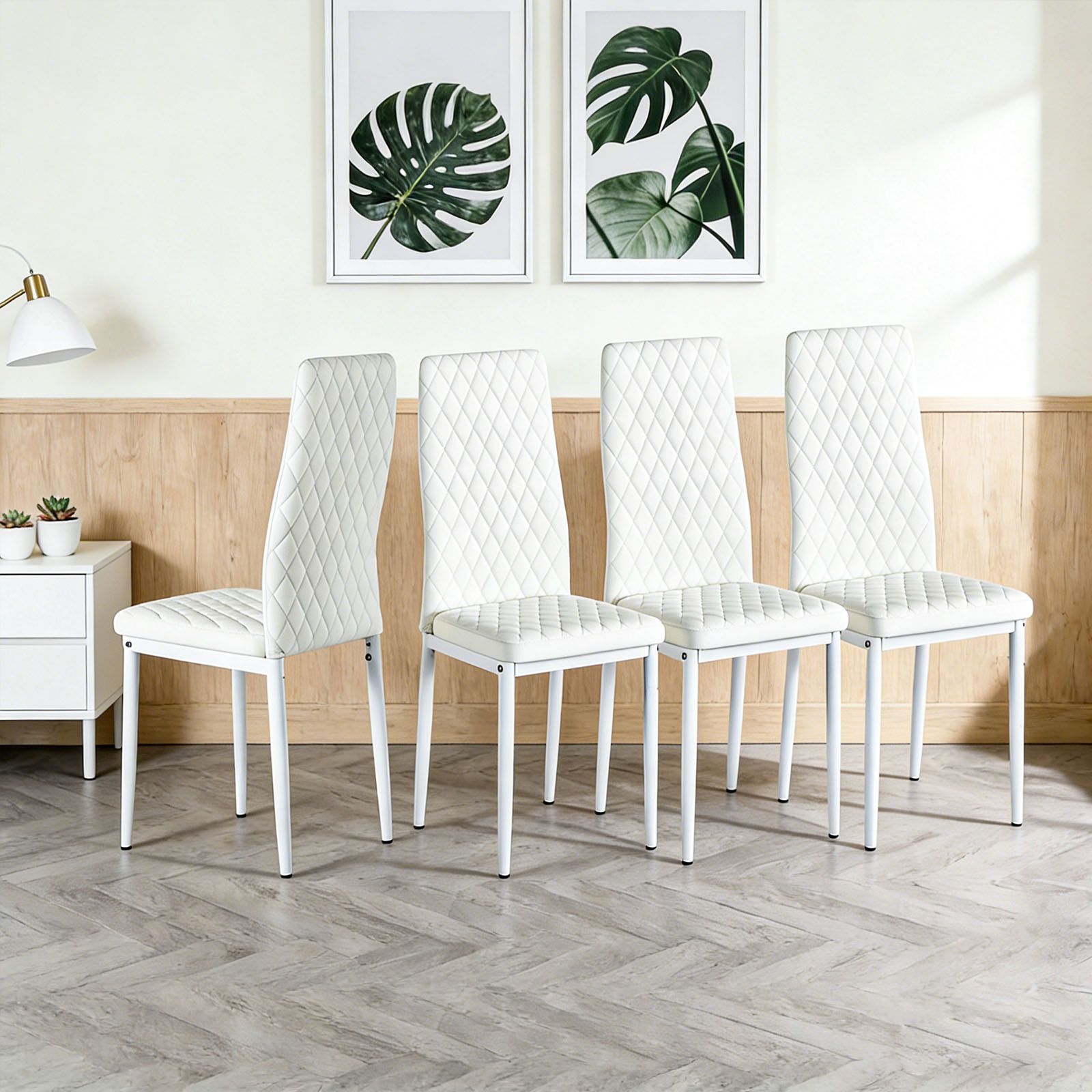 ダイニングチェア 4脚セット PUレザー 椅子 イス 食卓椅子 菱形 レトロ 北欧 コンパクト リビングチェア 【ホワイト】