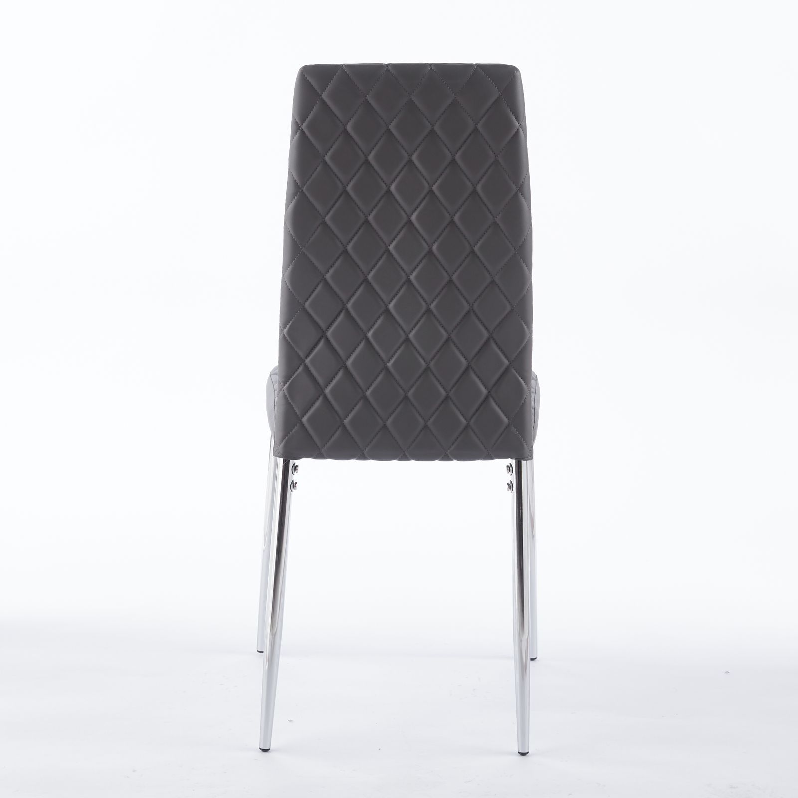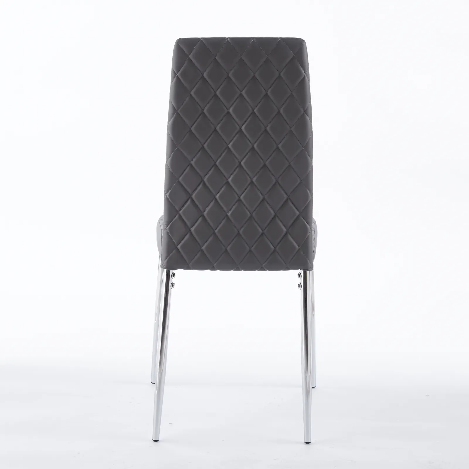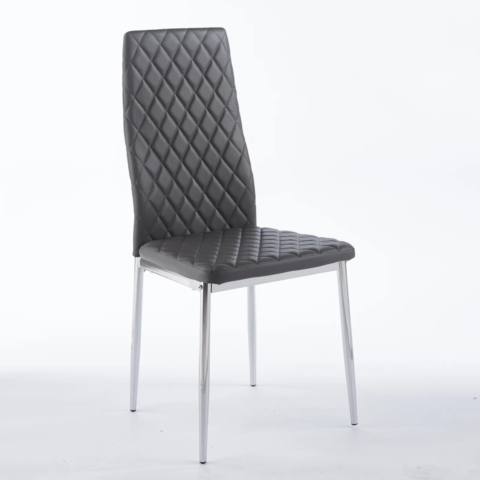 ダイニングチェア 4脚セット PUレザー メッキ脚 椅子 イス 食卓椅子 菱形 レトロ 北欧 コンパクト リビングチェア 【グレー】