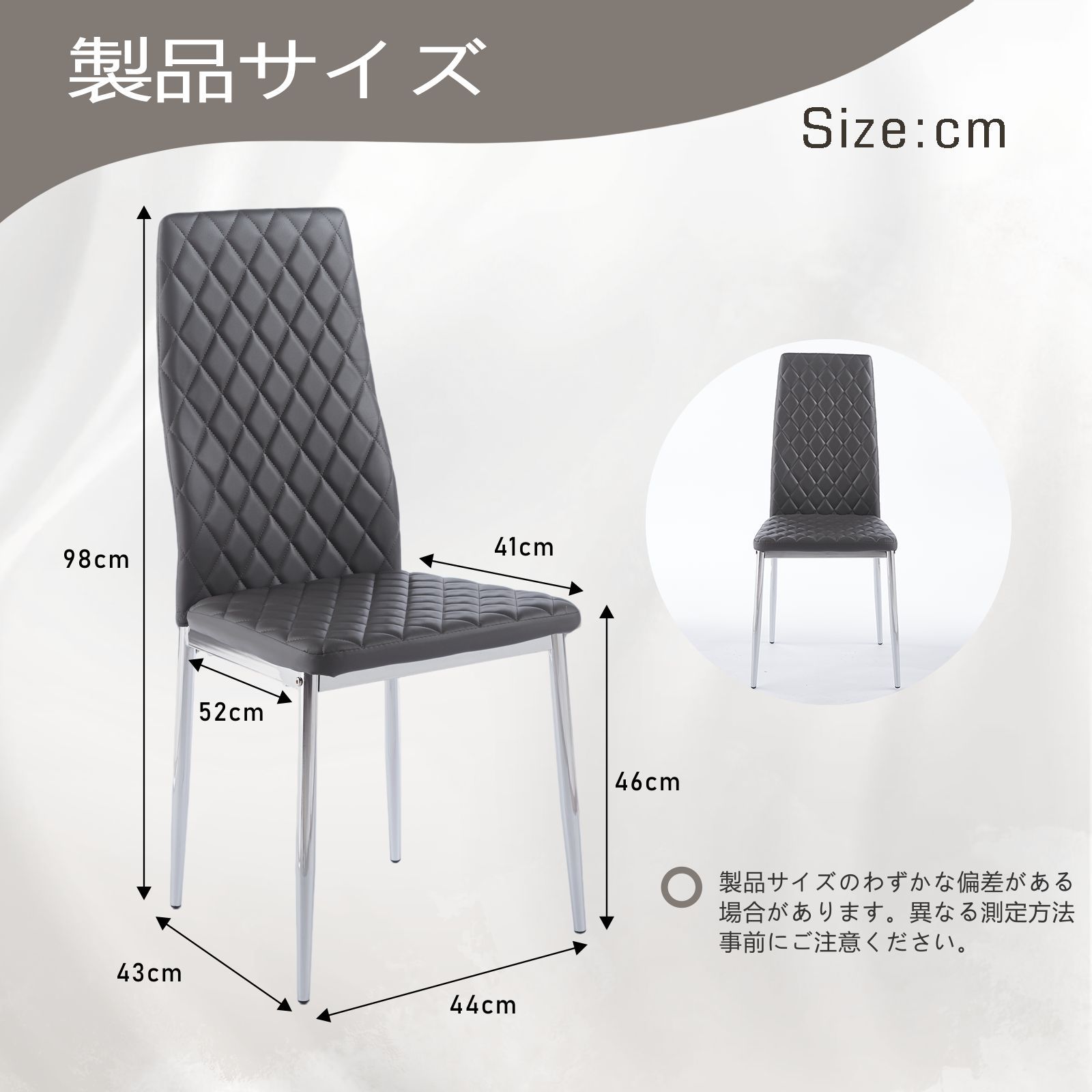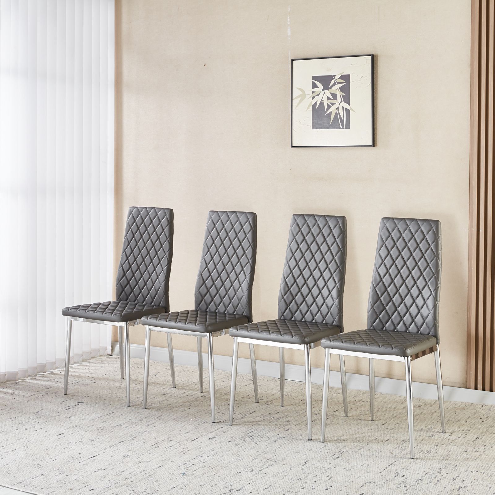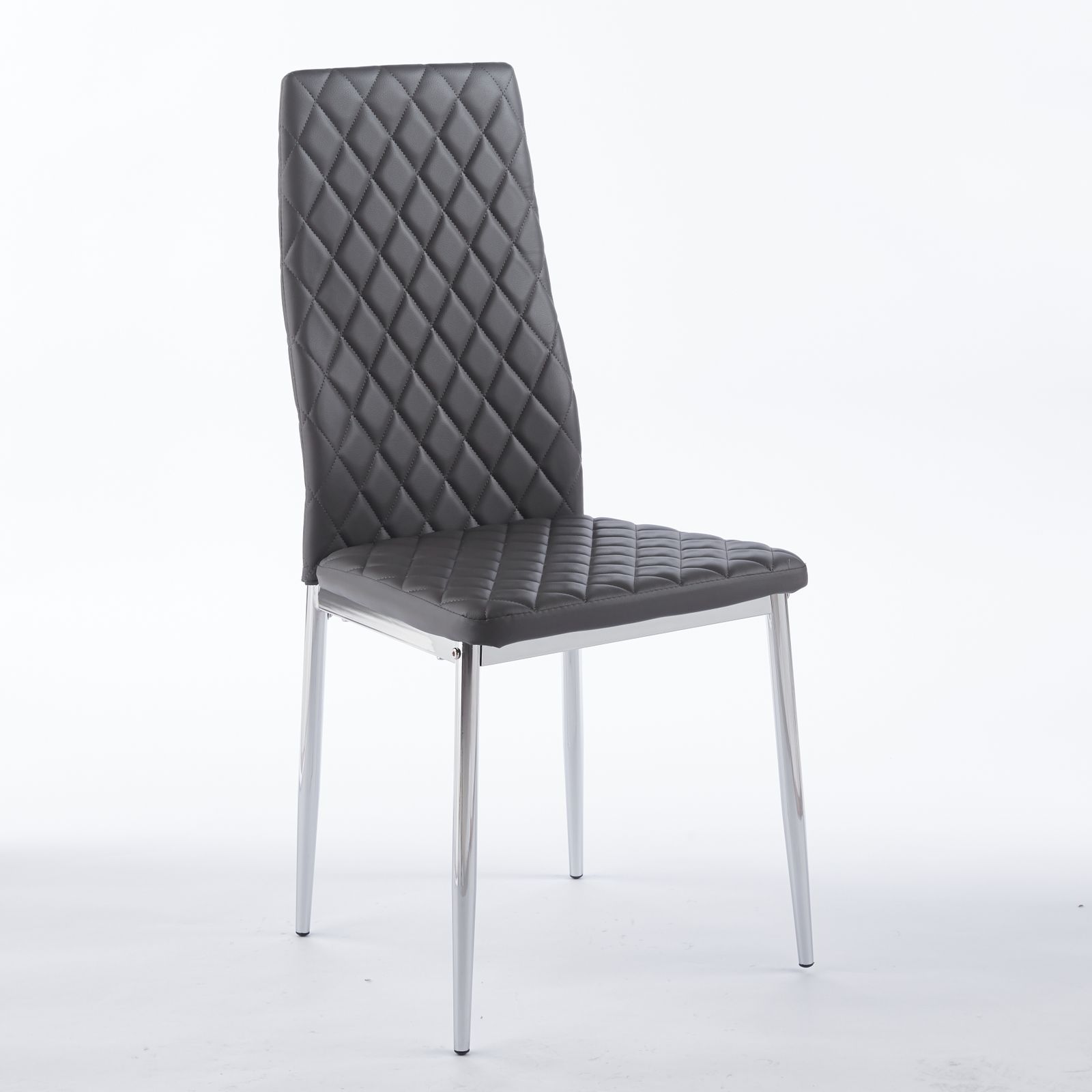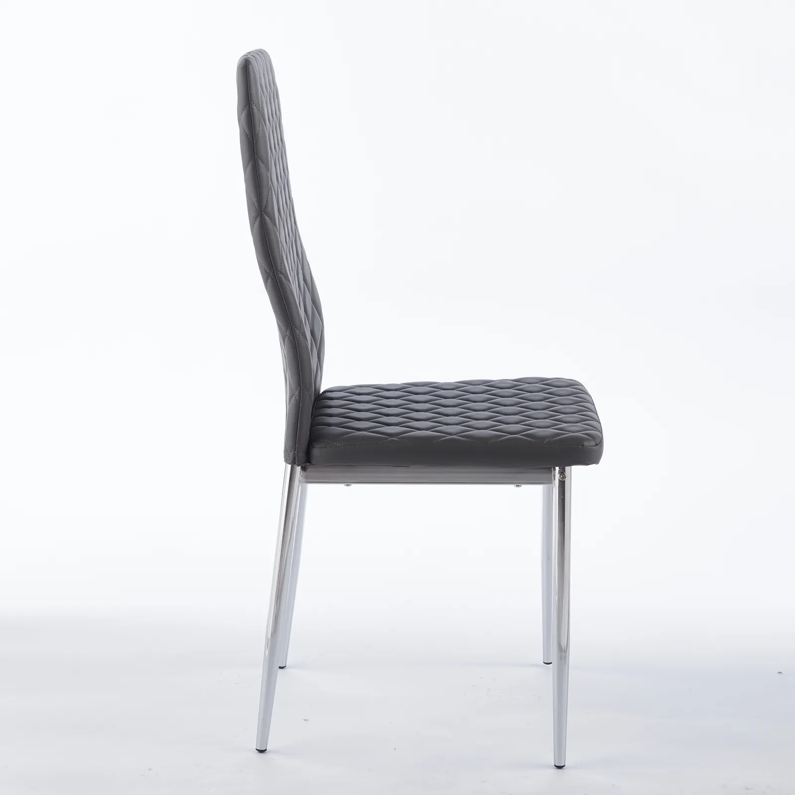 ダイニングチェア 4脚セット PUレザー メッキ脚 椅子 イス 食卓椅子 菱形 レトロ 北欧 コンパクト リビングチェア 【グレー】