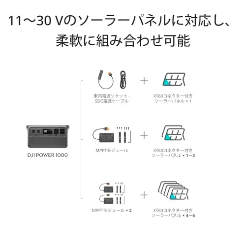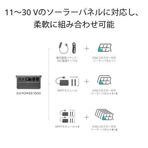 互換性:DJI Power ソーラーパネル アダプターモジュール (MPPT), DJI Power 車内電源ソケット - SDC 電源ケーブル (12V/24V)
