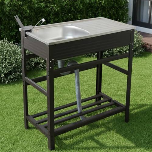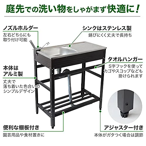 iimono117 流し台 屋外 ブラウン フルセット ガーデンシンク キッチンシンク アルミ シンク ステンレス製 おしゃれ 台所 流し (75cm通常)★m