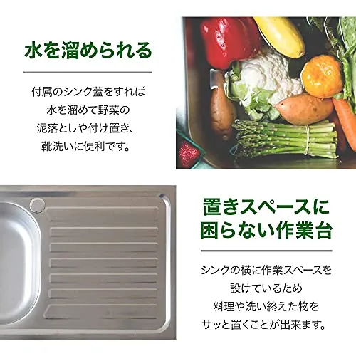 付属のシンク蓋をすれば水を溜めて野菜の泥落としや付け置き、靴洗いなどに便利です。