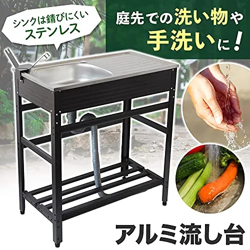 庭先での洗い物や手洗い、建築現場、キャンプ場、墓地など色々な場所にドライバー1本!施工いらずで設置でるアルミ流し台