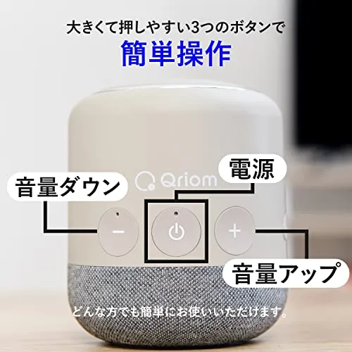 【簡単操作】スピーカー本体のボタンは「電源」「音量アップ」「音量ダウン」の3つで操作が簡単です。ボタンも大きくて押しやすいので、どんな方でも簡単にお使いいただけます。