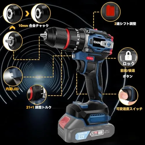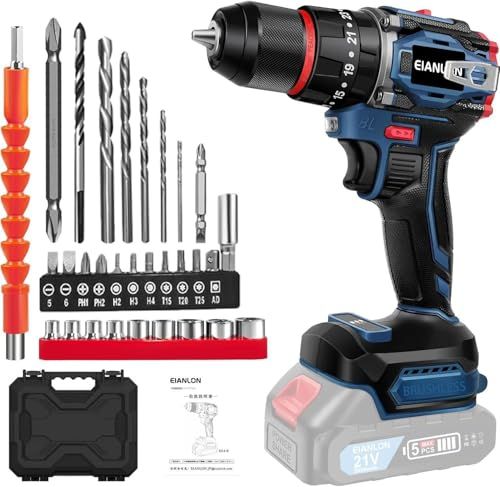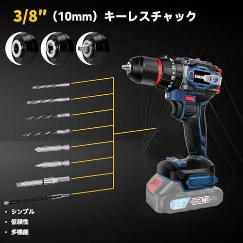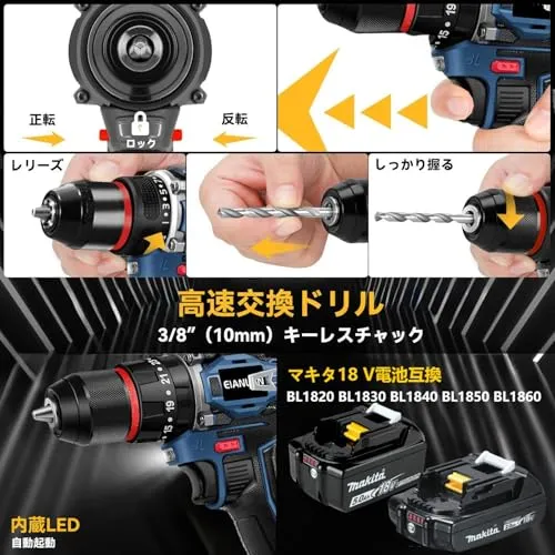 電動ドライバー EIANLON コードレス電動ドリル 21V/18V 最大45N.m 21+1段階トルク調節 スピード調節/正逆転切替 ブラシレスモーター搭載 充電ドライバー 初心者向け DIY工具セット マキタ18Vバッテリー対応 BL1820 BL18★m