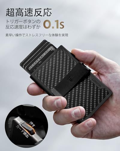 超高速アクセスメカニズム - このメンズウォレットは、トリガーみたいなボタンでカードをサッと取り出せるポップアップメカニズムを搭載しています。シリコンと金属製の安全なチャンバーで、カードが飛び出さないようにしっかりガード。何千回もテストを重ねて、スピードと精度をとことん追求した、信頼性抜群のカード排出メカニズムです。