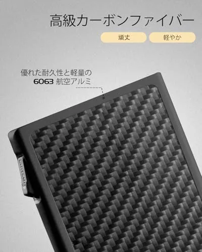 超洗練された軽量デザイン - LORZORウォレットは、スーパーカーにも使われる本物のカーボンファイバーを贅沢に使用し、超軽量でありながら驚くほど耐久性があり、スタイリッシュな仕上がりを実現しました。オンラインでよく見かける偽物とは一線を画し、私たちの金属製ウォレットは傷がつきにくく、手に取るたびに感じる高級感が魅力です。このモダンなウォレットは、スリムで実用的なデザインを保ちながら、長く愛用できるように設計されています。日常使いにぴったりの一品です。