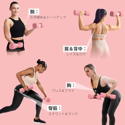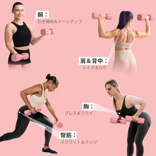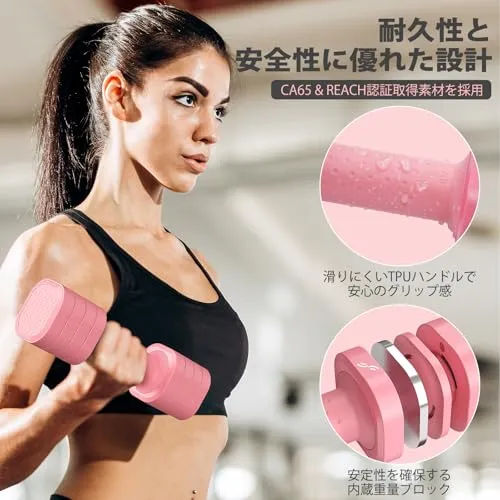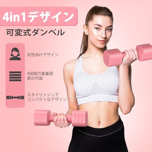 【4-in-1調節可能ウエイト】革新的な回転式調節システムにより、ワンタッチでスムーズに重量の切り替えが可能。筋トレメニューに合わせた負荷調節が可能に。女性向けの最適な重量バリエーションで効率的なボディメイクをサポート。
