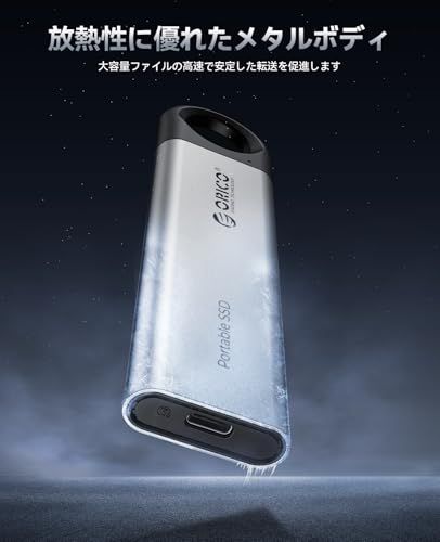 【アルミ合金筐体で高耐久性】ORICOポータブルSSDはアルミニウム合金を採用しており、衝撃・熱・摩耗に強く、落下にも配慮されています。防塵・防滴仕様で、外出先での使用環境でもデータをしっかり保護します。