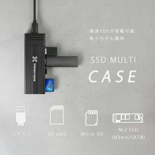 【送料無料】Xaterrace SSD 外付けケース & 4in1 USBハブ NVMe / M.2 SATA 対応 ( 2242/2260/2280 ) USB3.2 Gen2接続 10Gbps高速転送 SDカード / TFカード USB3.1 Gen2×2