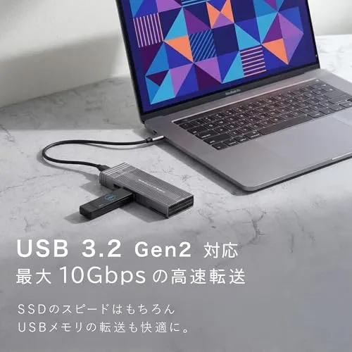 【10Gbpsの高速データ転送】NVMeとSATA (M-Key / BM Key)のM.2 SSDが利用可能です。 UASPアクセラレーション・プロトコルに対応しており、理論上のデータ転送速度は NVMe SSD で最大10Gbps、M.2 SATA SSDで最大6Gbpsと超速い