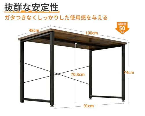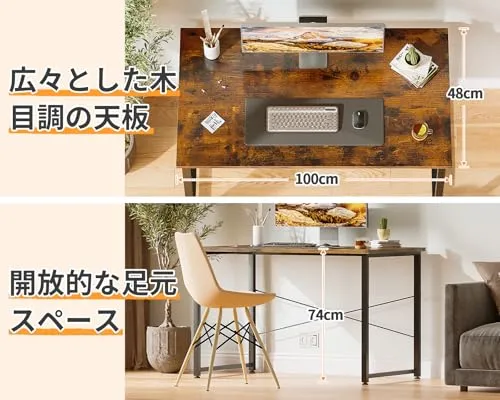【商品仕様】シンプルでインテリアに馴染むおしゃれなデスクです。本体サイズ:幅100奥行48高さ74CM 本体重量:7KG 日本語組立説明書あり お客様組立て品で、レンチも付属しており、別途で工具を買う必要がないです。