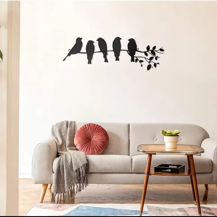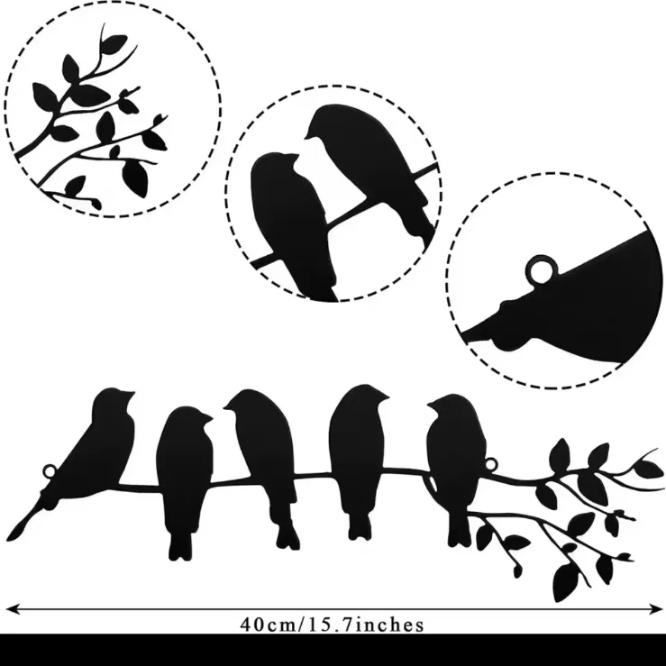 枝に5羽の小鳥 メタルアート ウォールアート ガーデンオブジェ 黒