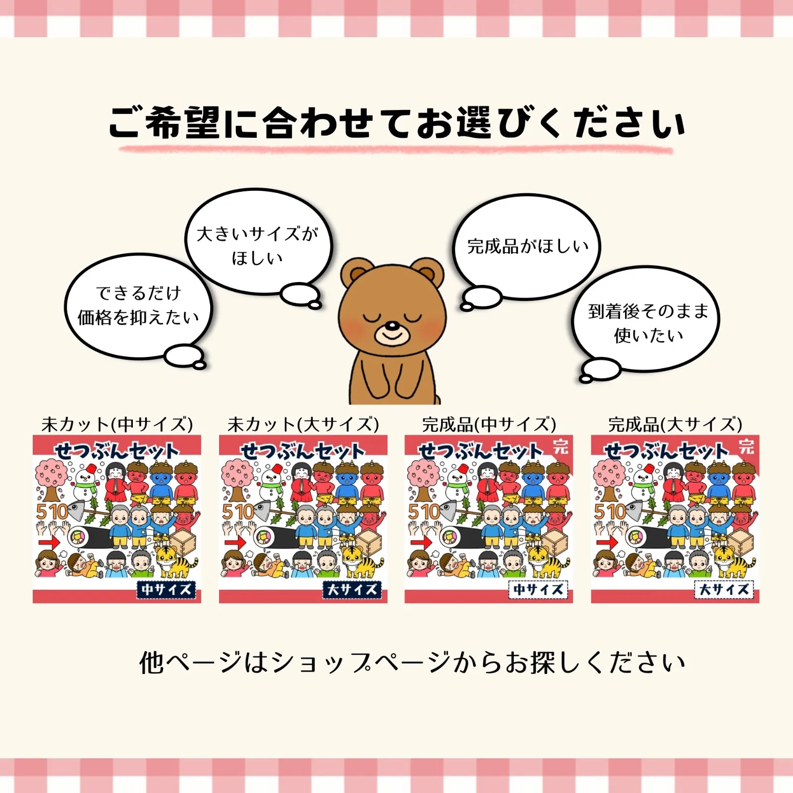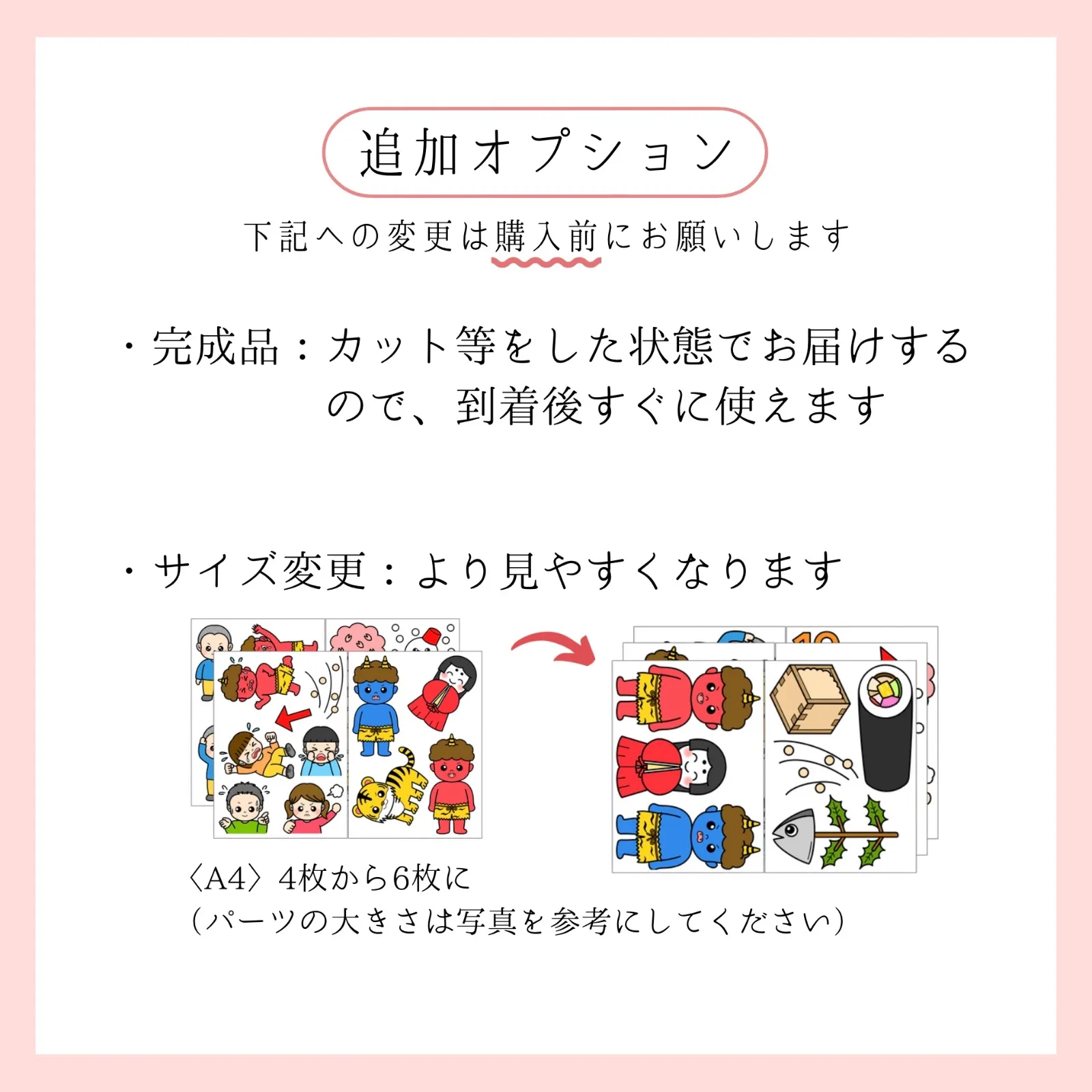 【豆まき・おにのぱんつ】貼りながら歌をうたいましょう! ┈有料オプション┈ ▣ 完成品⇢+¥1000 ▣ サイズ変更⇢+¥800 ▣ お急ぎ便⇢+¥700 ▣ 匿名配送⇢+¥100 ※Pペーパーではなく画用紙に印刷することも可能です