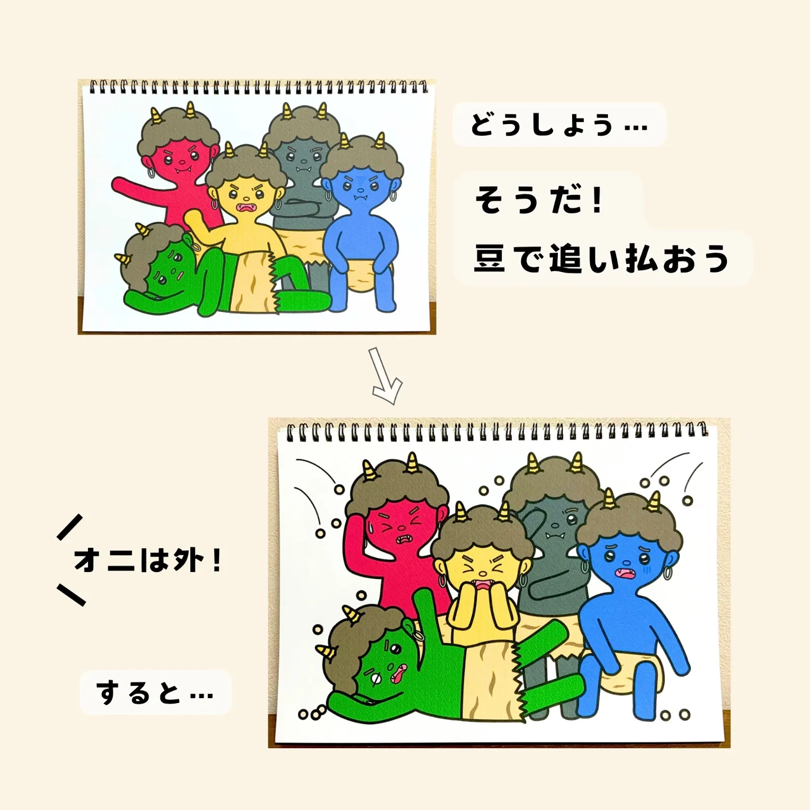 【台本付き完成品】スケッチブックシアター「心のなかにオニ?」せつぶん節分鬼おに豆まき保育教材2月3日お誕生日会★