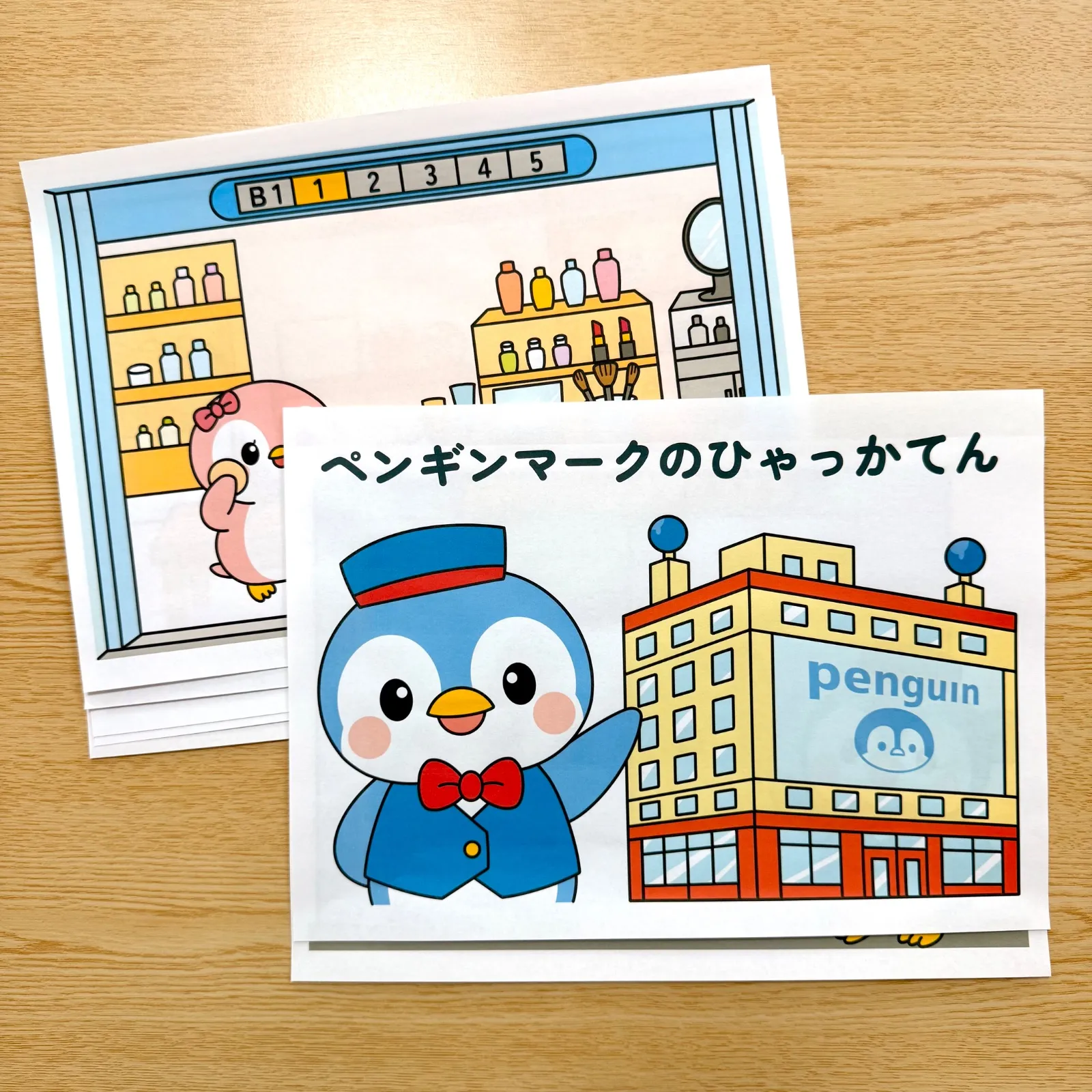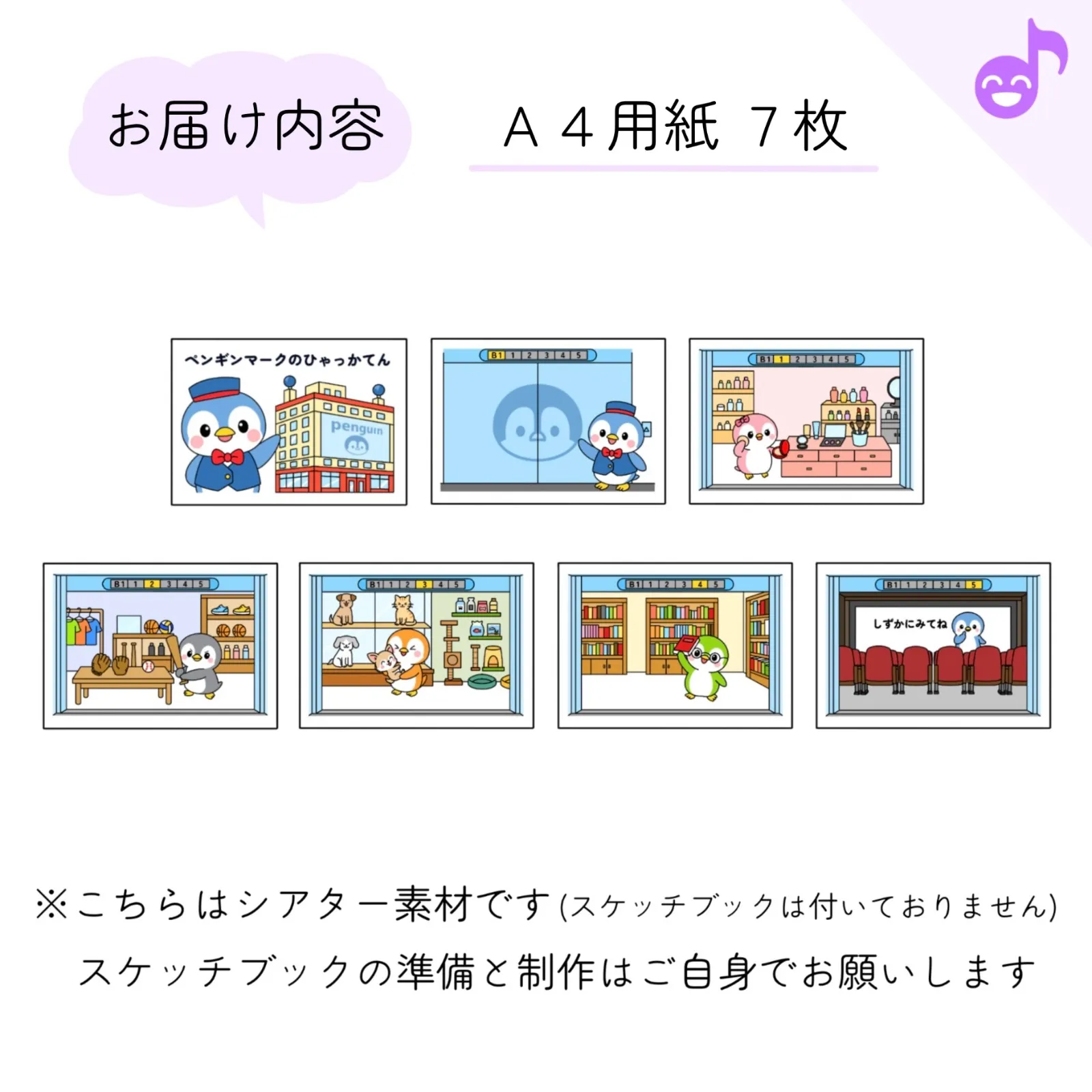 スケッチブックシアター素材「ペンギンマークのひゃっかてん」百貨店夏保育教材手遊び歌てあそびうた童謡歌シアター★