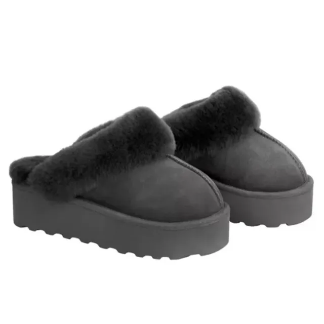 新品 カークランドシグネチャー プラットフォーム スリッパ グレー レディースサイズ26cm モコモコ 靴 グレー/900735