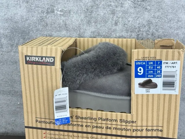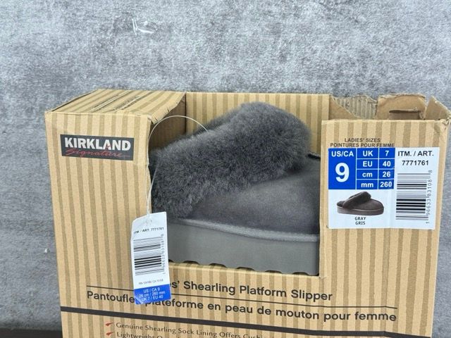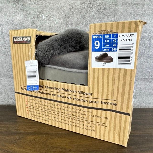新品 カークランドシグネチャー プラットフォーム スリッパ グレー レディースサイズ 26cm モコモコ 靴 グレー/900735