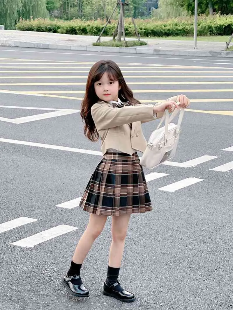 入学式 卒園式 スーツ 女の子 フォーマル 3点セット 入学式 子供服 チェック柄 上下セット 小学校 入学式 フォーマルスーツ ジャケット ブラウス スカート 七五三 発表会 キッズ 入園式 卒業式 イベント 撮影写真 パーティー 結婚式 誕生日 100 110 120 130 140 150 160 kbr01