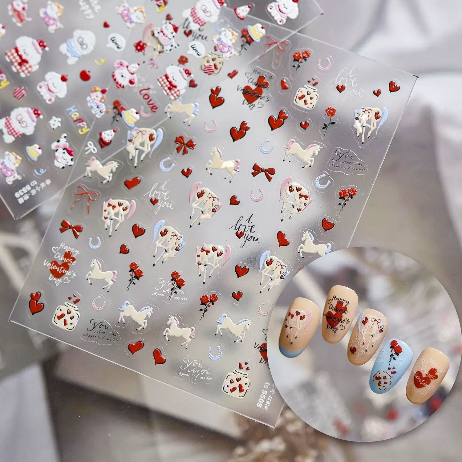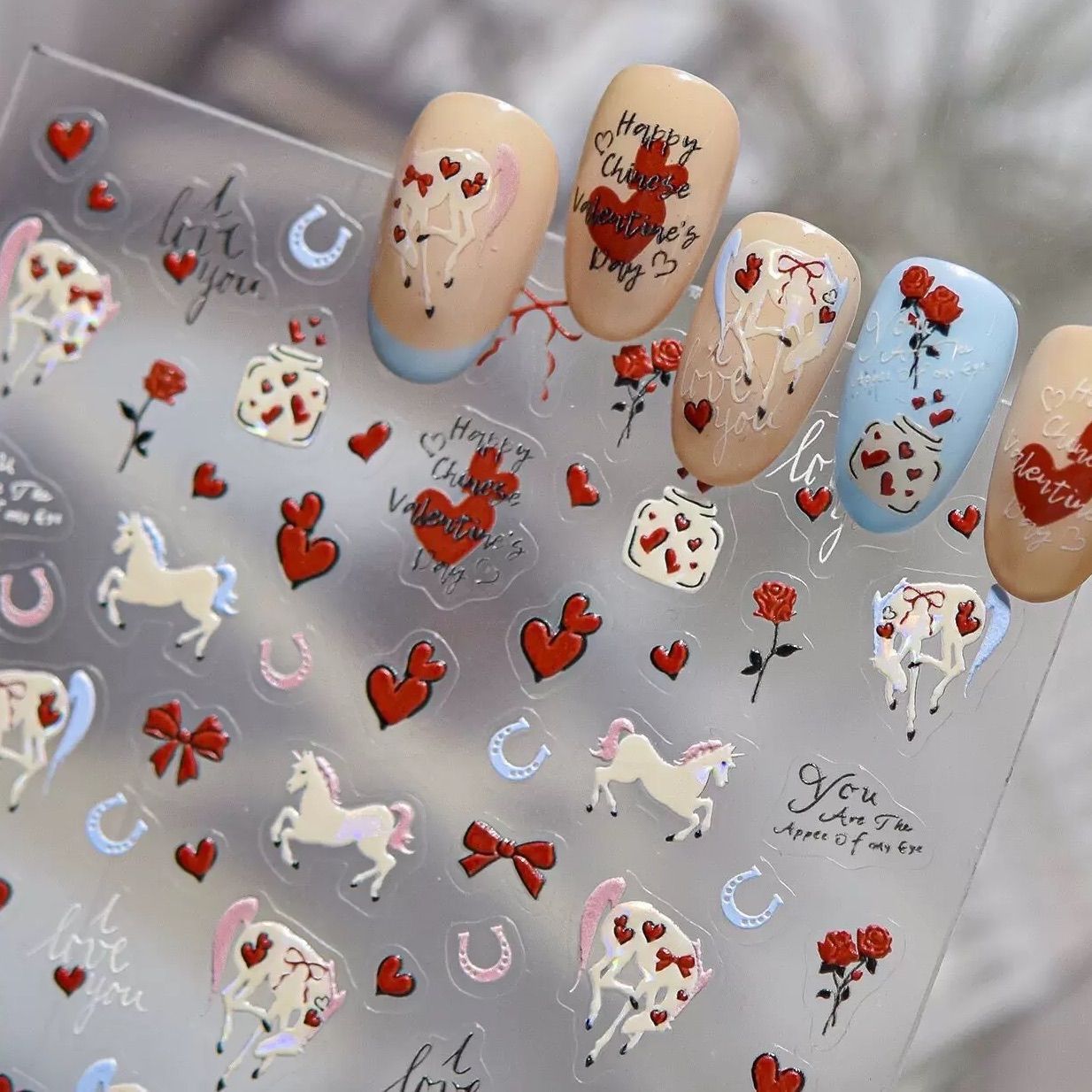 匿名配送⭐︎ネイルシール 立体 3D 馬 ハート バレンタイン ホースシュー 5505
