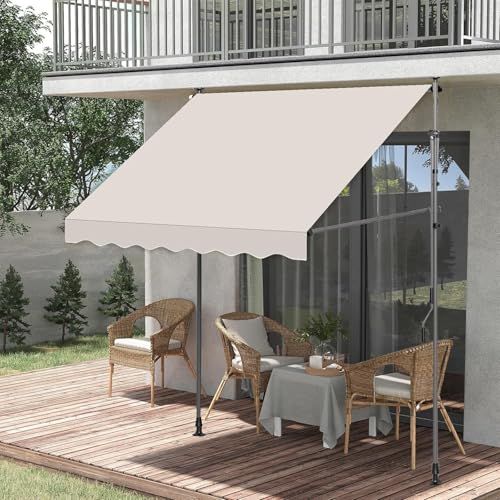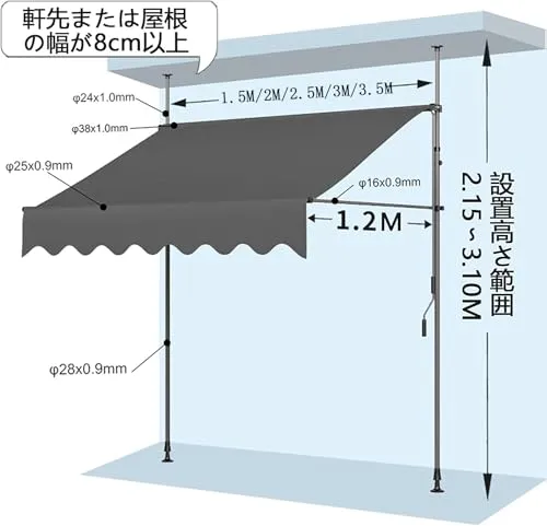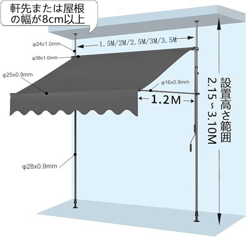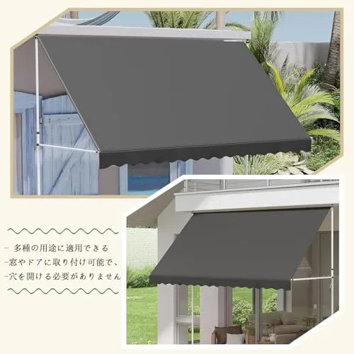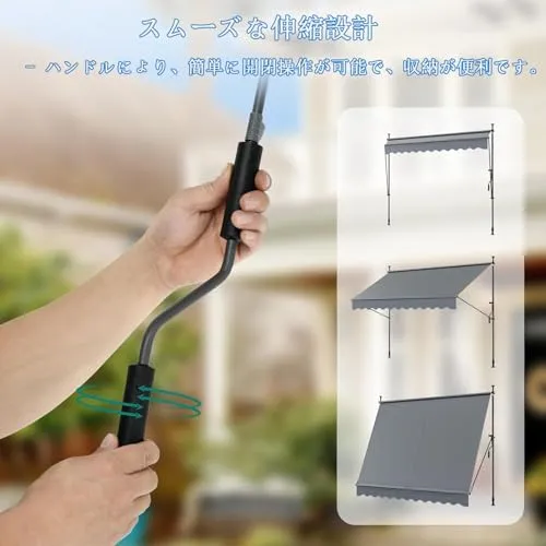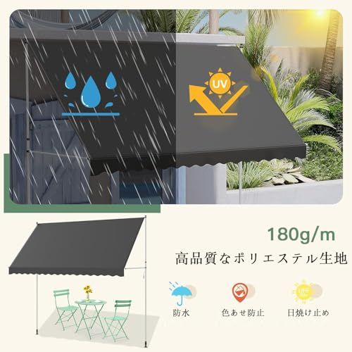 【説得力のある品質】:ガーデン用日よけ オーニングのフレームは、丈夫な鋼材で作られています。厚い(210 g/m?)、抗紫外線(UV50)、防汚性、防水性のあるポリエステルとPUコーティングにより、日よけは屋外での使用に最適です。また、生地は洗濯でき、汚れた場合は簡単にクリーニングできます。