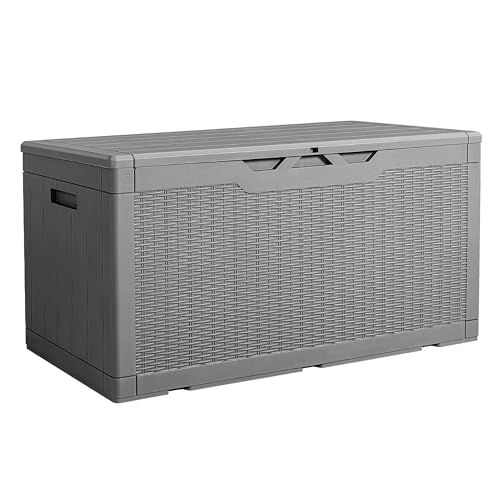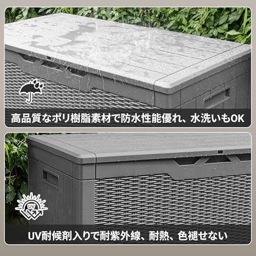 物置 収納庫 屋外 防水 耐候 380L大容量 幅123*奥行57*高さ62cm ベランダ収納 大型物置 倉庫 ベランダストッカー 屋外収納 ガーデン収納 ベンチ コンテナ ガーデン/庭/ベランダ 収納 大容量 おしゃれ (グレー, 380L)★m