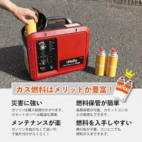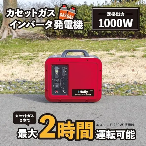 Holiy カセットガスインバータ発電機 23907 定格出力1.0kVA USBポート×2付き★m