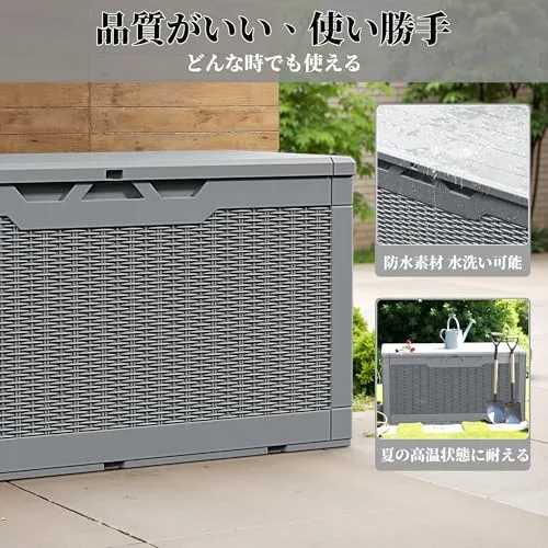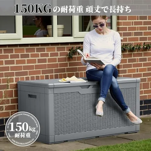 【150KGの耐荷重】耐荷重は150kgで、ベンチとしても使用可能、大人2人が座ってもびくともしません。庭の手入れを行うときや修理の際に、用具を収納ボックスの上に置くことができ、便利です。外力が加わっても簡単には崩れなく、変形しません。
