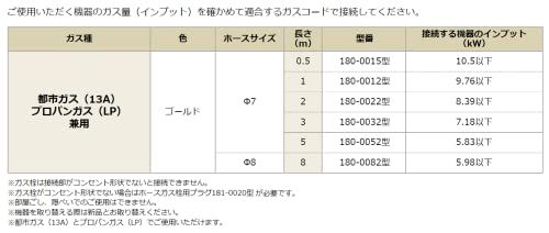 ご注文間違いが無いようお確かめの上、ご注文をお願いいたします(他のガスコードへ交換することができません)