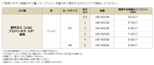 長さ3m、ホースサイズ:Φ7、接続する機器のインプット(kW):7.18以下