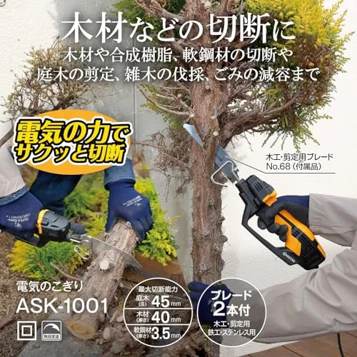 京セラ(Kyocera) 旧リョービ 電気のこぎり DIY木工に便利な万能タイプ ASK-1001 618404A 【木材から軟鋼材の切断、庭木の剪定が出来るマルチユース】 切断能力 (庭木)径45mm・(木材)厚さ40mm・(軟鋼板)厚さ3.5mm・(塩★m