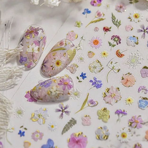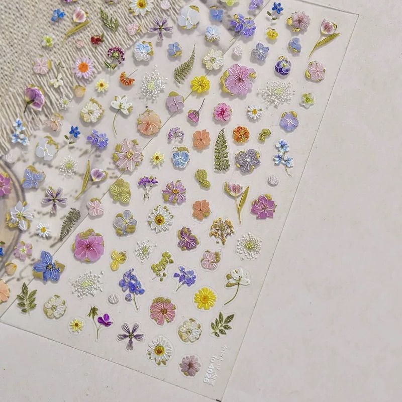 まるで植物図鑑のようにたくさんの花が描かれた美しいネイルシールです♪