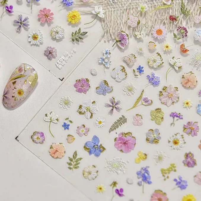 シール ステッカー セルフネイル ハンドネイル フットネイル ポリッシュ マニキュア ジェルネイル ネイルチップ つけ爪 付け爪 自爪 地爪 ネイルアレンジ レジン アクセサリー ハンドメイド デコ パーツ 素材 材料 エンボス加工 立体 3D ホログラム ボタニカル 花 フラワー 小花 春