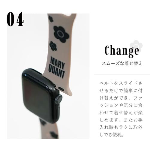 【スタイリッシュなデザイン】このマリークワントのアップルウォッチバンドは、トープカラーのシリコン素材を使用し、洗練されたデザインでどんなスタイルにもマッチします。日常のファッションにアクセントを加え、あなたの個性を引き立てます。