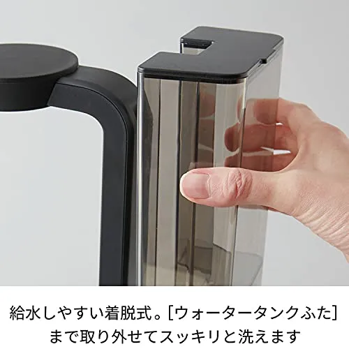 【従来のコーヒーメーカーのイメージにはまらないお洒落でシンプルな佇まい】ウォータータンクが薄くて正面から見えにくい、軽やかなデザイン。幅は15cm弱。コンパクトなキッチンにも置きやすいサイズです。