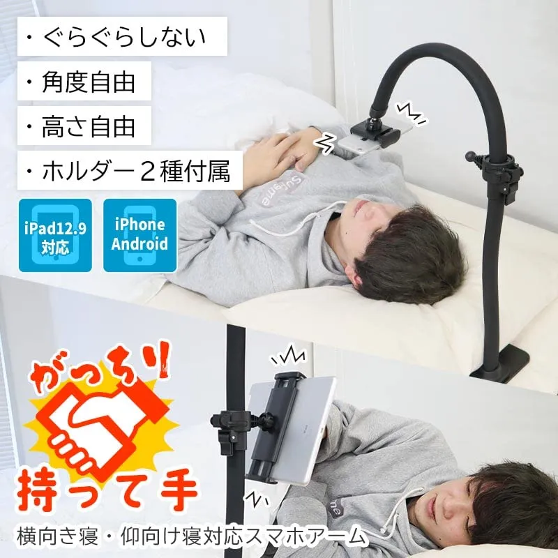 【送料無料】THANKO 横向き寝・仰向け寝対応スマホアーム がっちり持って手 単体 GRNSTDSBK スマホアーム スマホスタンド 高さ調整 角度調整 寝ながら スマホ タブレット アーム スタンド